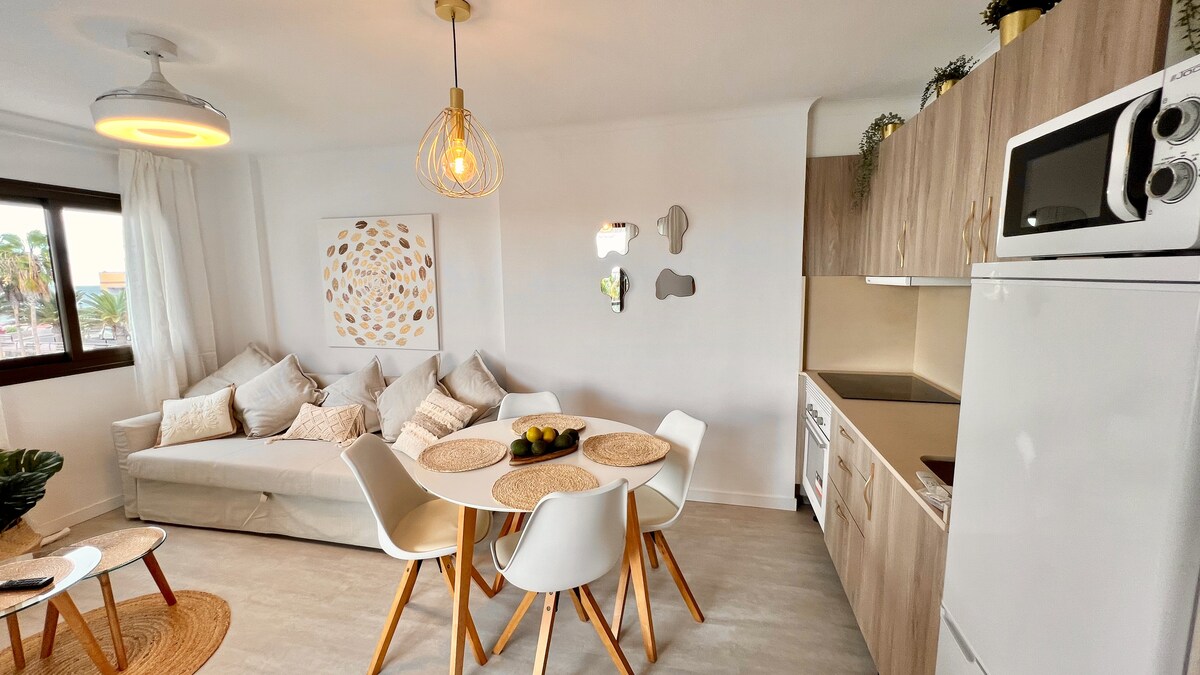 Nouvel appartement en bord de mer entièrement meublé : TV 75" salon, 55" chambre, canapé électrique, four, micro-ondes, lave-vaisselle, lit 180/200 dans un complexe récemment construit. L'immeuble dispose d'un solarium avec pelouse et deux jacuzzis pour se détendre, situé à côté de la plage, à côté du complexe sportif David Silva qui dispose de courts de padel, d'une piscine olympique avec spa et d'une salle de sport. L'appartement est situé dans un quartier très central d'Arguineguin avec de nombreuses zones de restauration.