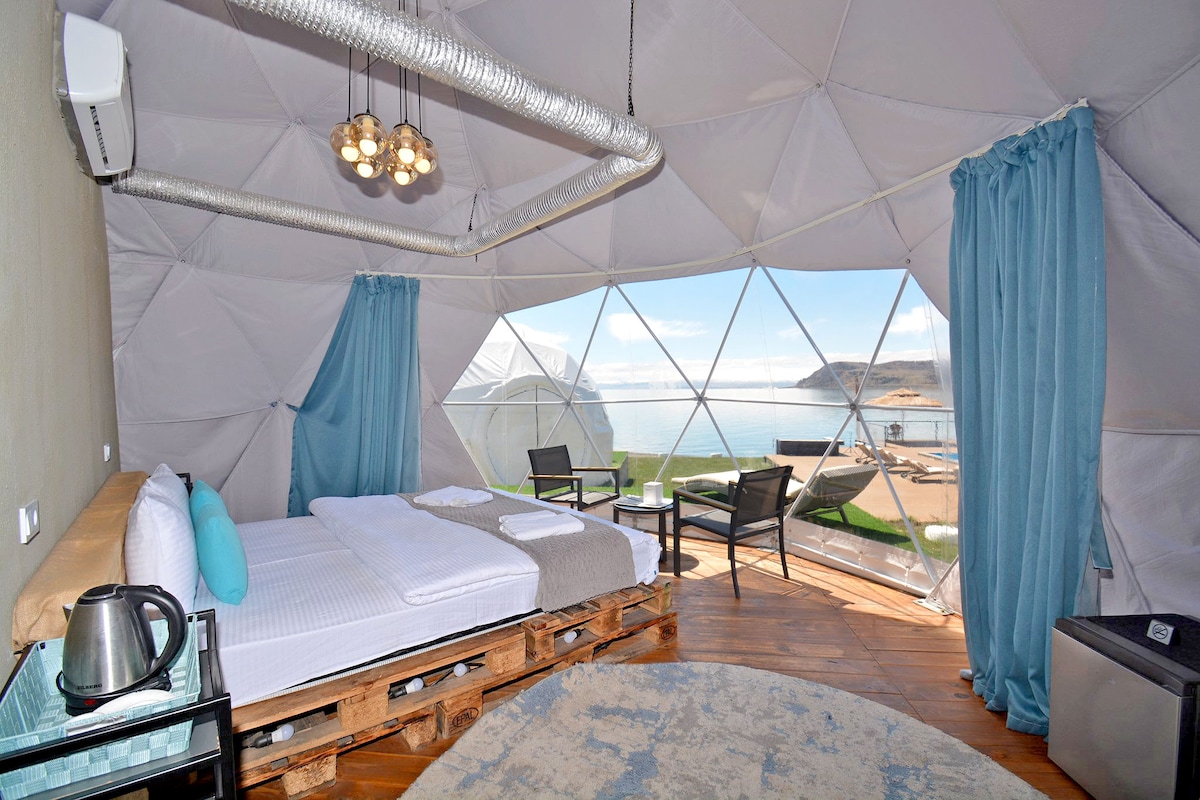 Glamping unique à Comuna avec piscine gratuite sur la plage de Sevan. Le prix comprend une piscine extérieure et un accès à la plage, et nous avons un très bon restaurant et un bar qui travaillent pour votre confort. * Veuillez noter que notre piscine et notre restaurant ne fonctionnent pas du 1er octobre au 1er avril. Vous êtes libre d'apporter de la nourriture avec vous. Veuillez noter que vous n'avez pas d'installations de cuisine dans la chambre, vous ne pouvez apporter que des plats préparés ou utiliser des restaurants à proximité.