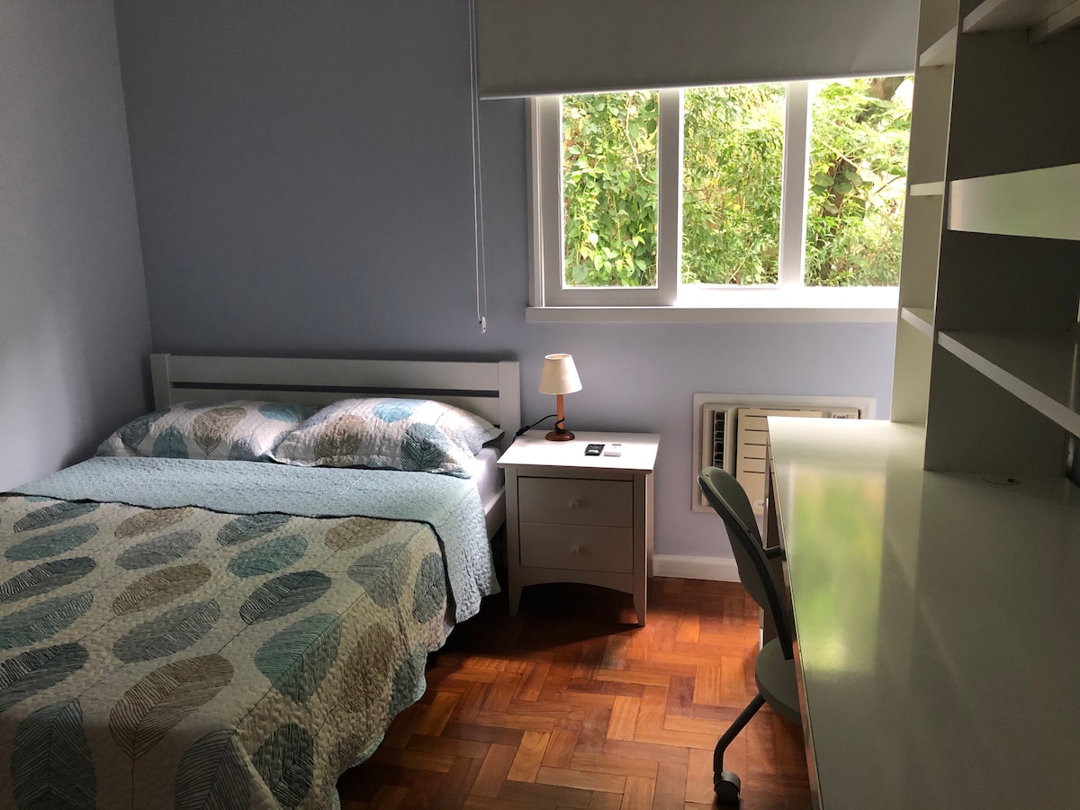 Just 1 block from the beach! Almost your own apartment: private studio within a 3-bedroom penthouse. Stylish small bedroom, private bathroom, living area, part of the veranda, fridge, microwave, and stove. Super fast 500mbps Wi-Fi + backup. Excellent location, close to the beach, subway, shops, bars, and restaurants. Perfect for those seeking comfort, privacy, and the vibrant energy of Rio de Janeiro.
