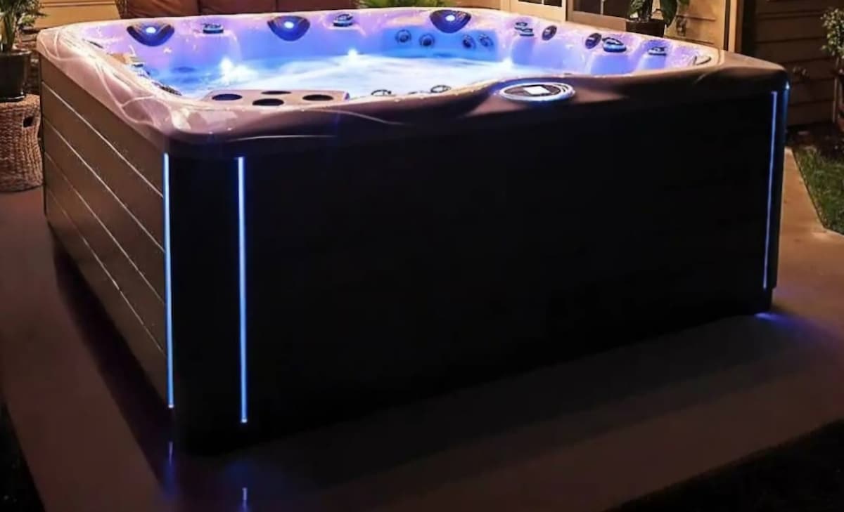 Spa avec télévision extérieure, foyer, kayaks, pêche