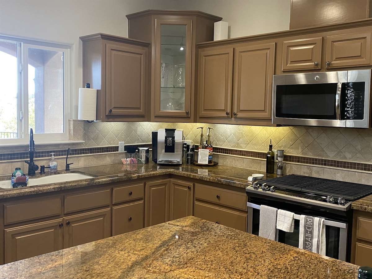 Cette maison est la 2ème maison de la propriété (la maison principale est également STR). Situé en haut d'une allée privée avec une belle vue sur les collines. Cuisine entièrement équipée avec réfrigérateur-congélateur, lave-vaisselle, four, cuisinière à 5 feux, micro-ondes, machine à glaçons, système d'osmose, machine à expresso entièrement automatique. Téléviseurs QLED 65pouces dans le salon et dans les chambres. Mobilier de patio avec belvédère couvert, barbecue au gaz, fumoir à granulés/barbecue, radiateurs de patio, table à feu. Le jacuzzi avec belvédère peut accueillir 6 personnes. Chargeur pour véhicules électriques/Tesla dans le garage.