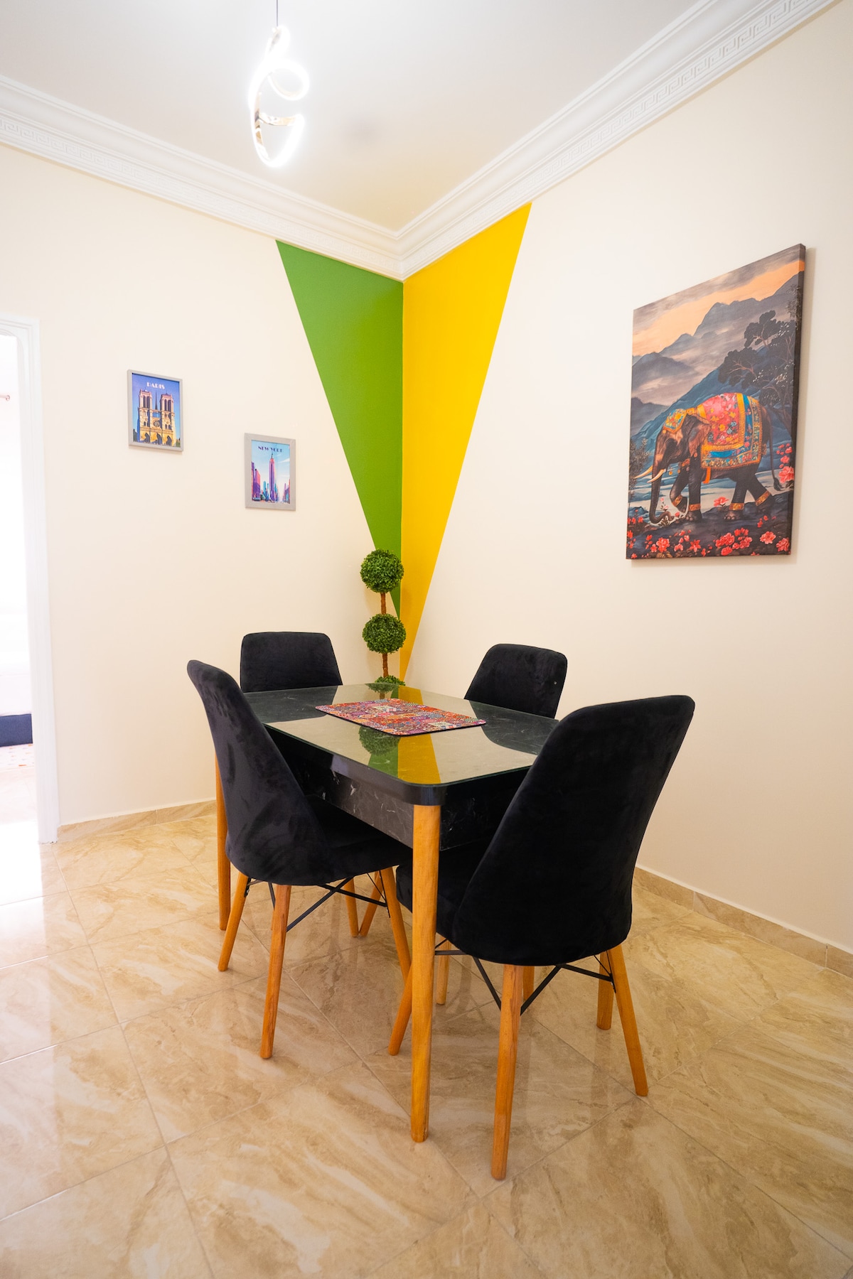 MERCI DE LIRE AVANT DE RESERVER Pour une expérience unique à Tanger, Bienvenue dans notre appartement moderne idéalement situé à 0 km du centre de Tanger, nous vous proposons cet appartement élégant aux couleurs sobres et épurées, en plein cœur de Tanger. A deux pas des endroits branchés de Tanger, Notre appartement vous promet élégance et praticité Remarque important: - Appartement au 4éme étage SANS ASCENSSEUR. - Appartement destinée uniquement à une clientèle familiale ou COUPLE MARIÉ.