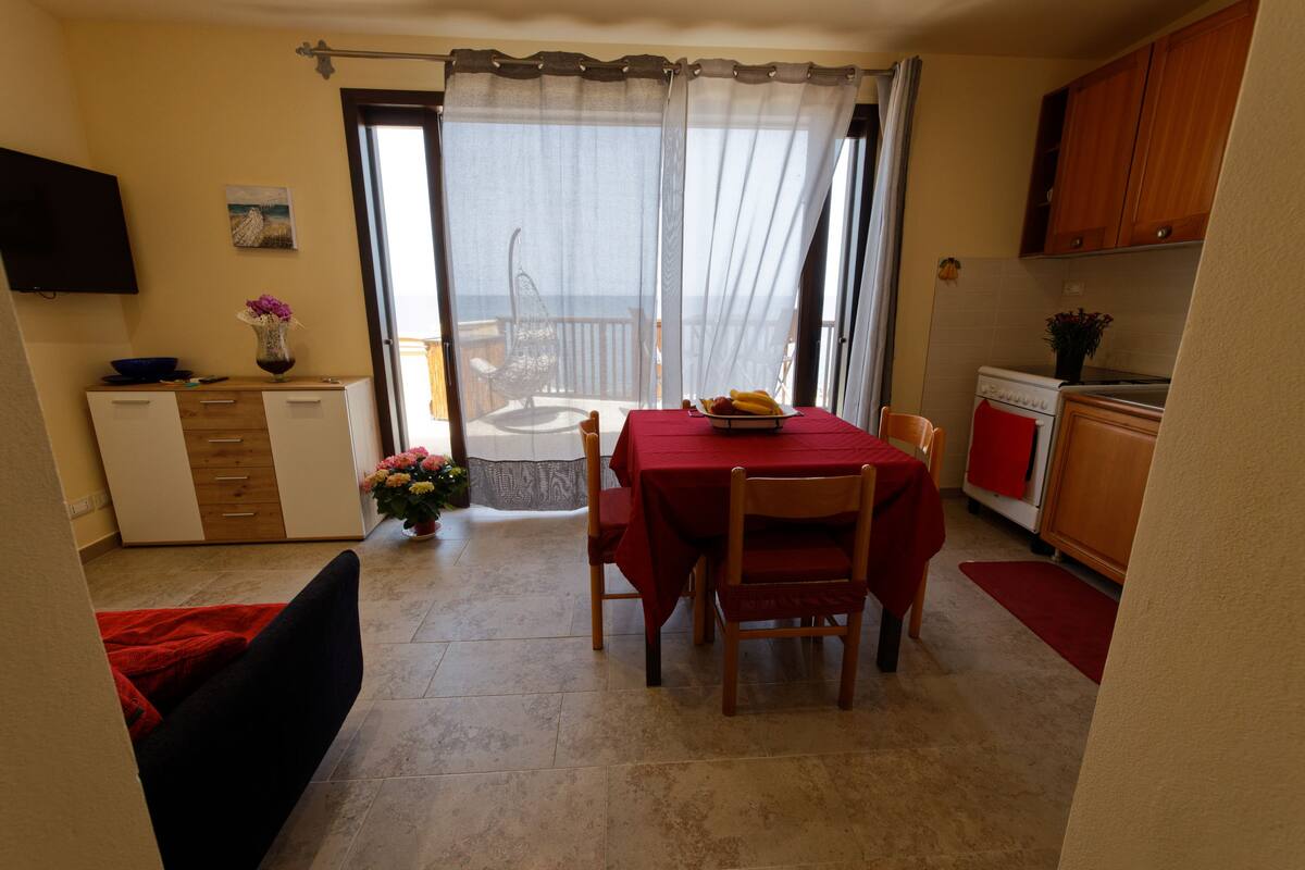 Oltremare Suite N ° 37 est un appartement dans la villa, face à la mer, d'où vous pourrez profiter d'une vue imprenable ! Il a une superficie de 130 m ² et un jardin/solarium avec piscine d'hydromassage chauffant (disponible de mai à septembre) Il se compose de deux chambres, dont une avec vue sur la mer, deux salles de bains, un grand salon et une cuisine avec des baies vitrées avec vue sur la mer. La villa est située sur l'une des côtes les plus pittoresques de la côte ouest sicilienne, à proximité de la charmante côte de Mongerbino.