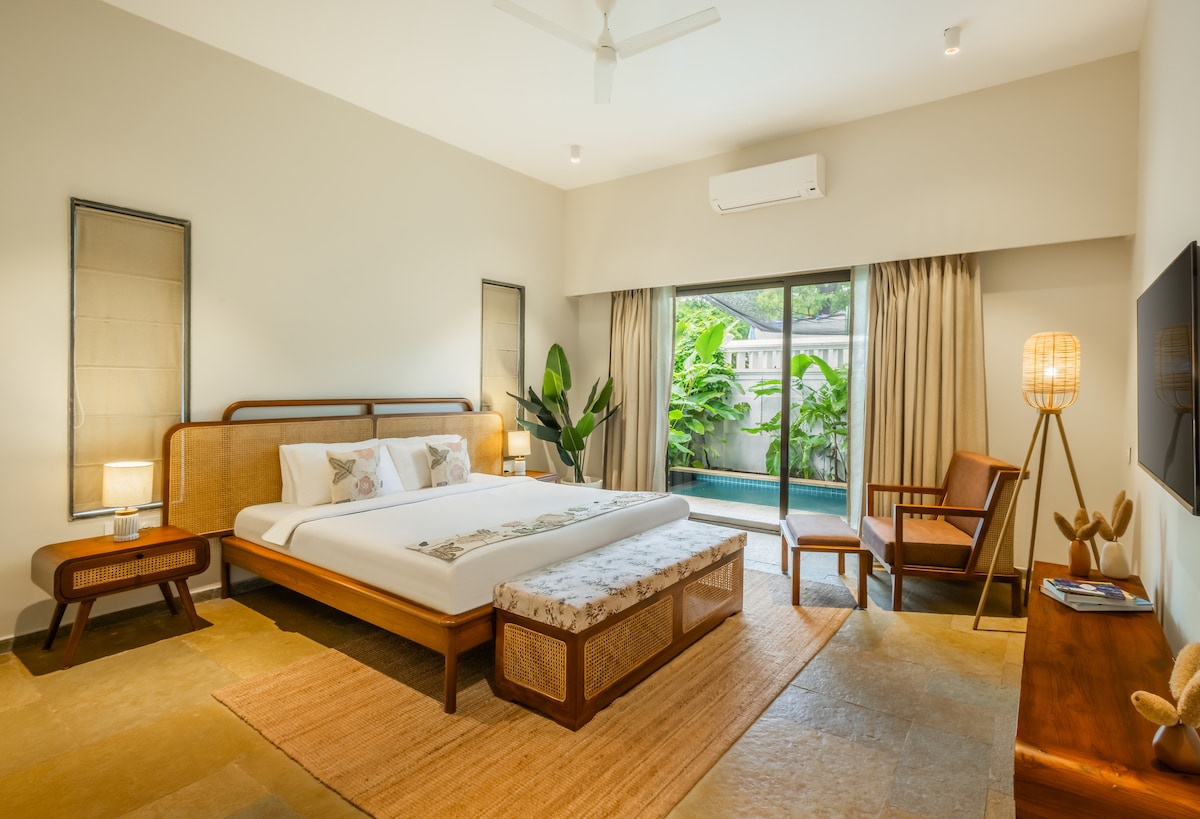 Indépendance, simplicité et luxe moderne dans un 1BHK avec hall, cuisine équipée, chambre principale avec salle de bain attenante et un grand balcon privé. Laissez-vous aller dans le matelas king size de luxe de 8 pouces, détendez-vous au bord de la piscine en dégustant des collations et des boissons, ou travaillez confortablement avec une connexion Wi-Fi rapide pendant que notre équipe s'occupe du reste. À seulement 7 minutes à vélo de la plage de Baga, c'est votre séjour de rêve à Goa, à la fois chic et économique. Idéal pour les couples, les travailleurs à distance ou les petites familles avec confort et liberté familiale.