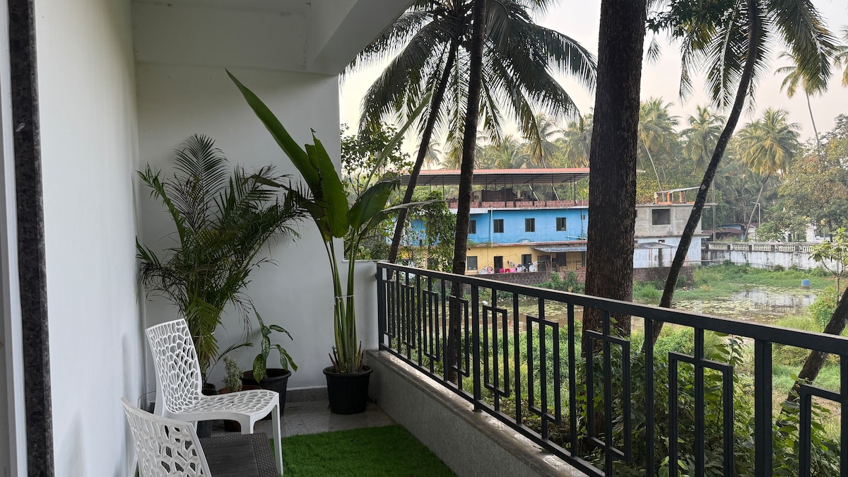 Chambre avec balcon au bord de la rivière à 5 minutes de la vie nocturne de la plage de Baga