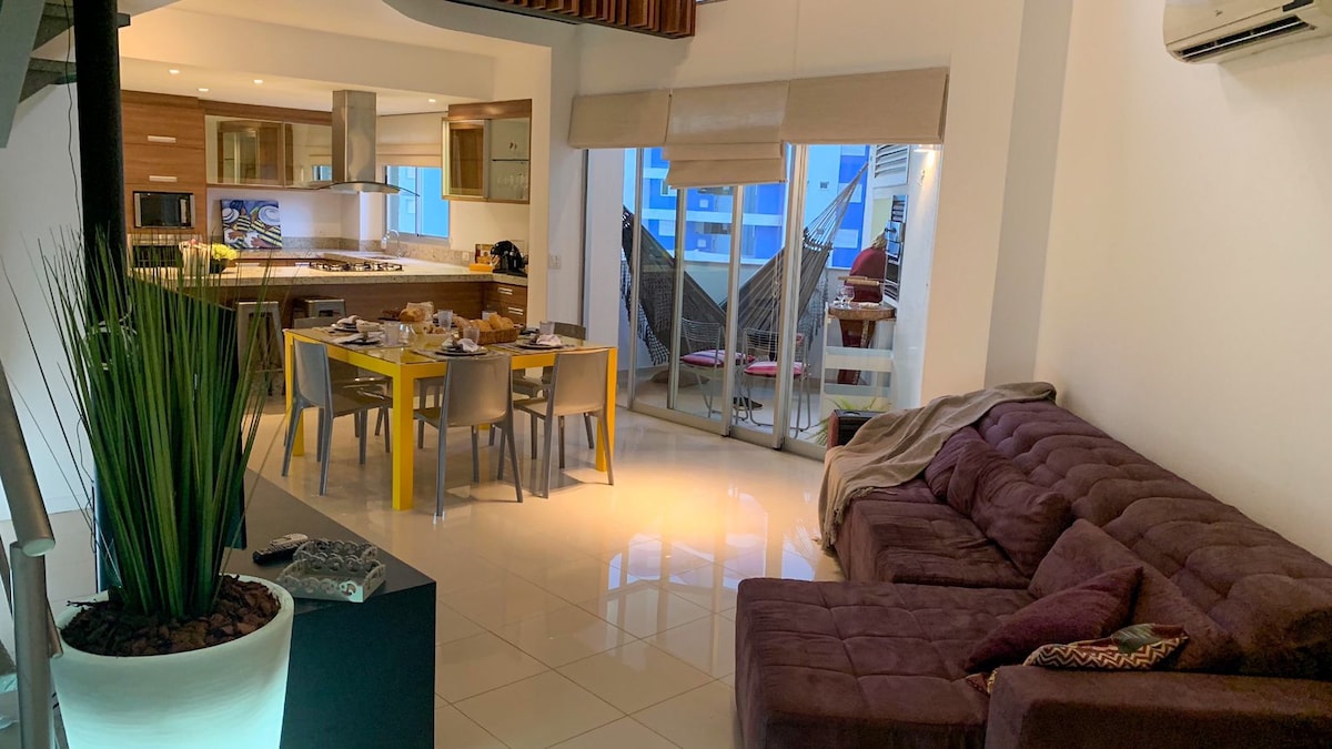 Appartement près d'Unicesumar dans la merveilleuse Cidade Canção, Maringá. L'appartement dispose de : - Une place de parking couverte ; - Climatisation dans les deux chambres ; - Internet ; Télévision/Smart dans le salon ; - Cuisine complète ; - Linge de lit et salle de bain. - L'arrivée/le départ peut être effectué à tout moment dans les délais convenus, directement avec le portier. - L'appartement en résidence dispose d'une épicerie.