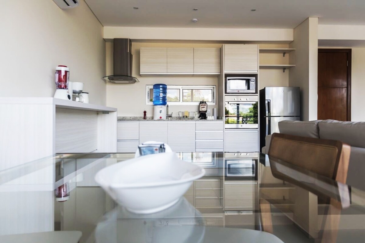 Le département comprend 20 Lts d'eau (rechargeables) + Café + Thé + Lait + Sucre + Sucre et Édulcorants gratuits, 1 place dans le garage. Garde privé et caméras de sécurité. SMART TV de 43", avec FLOW TV et Routeur Internet individuel, coffre-fort, canapé et salon, grandes salles de bains privées, sèche-cheveux service de ménage avec changement de draps et serviettes et remplacement d'accessoires de toilette personnel. Gym, Laundry, Salle de réunion avec barbecue et cuisine indépendante, Piscine.