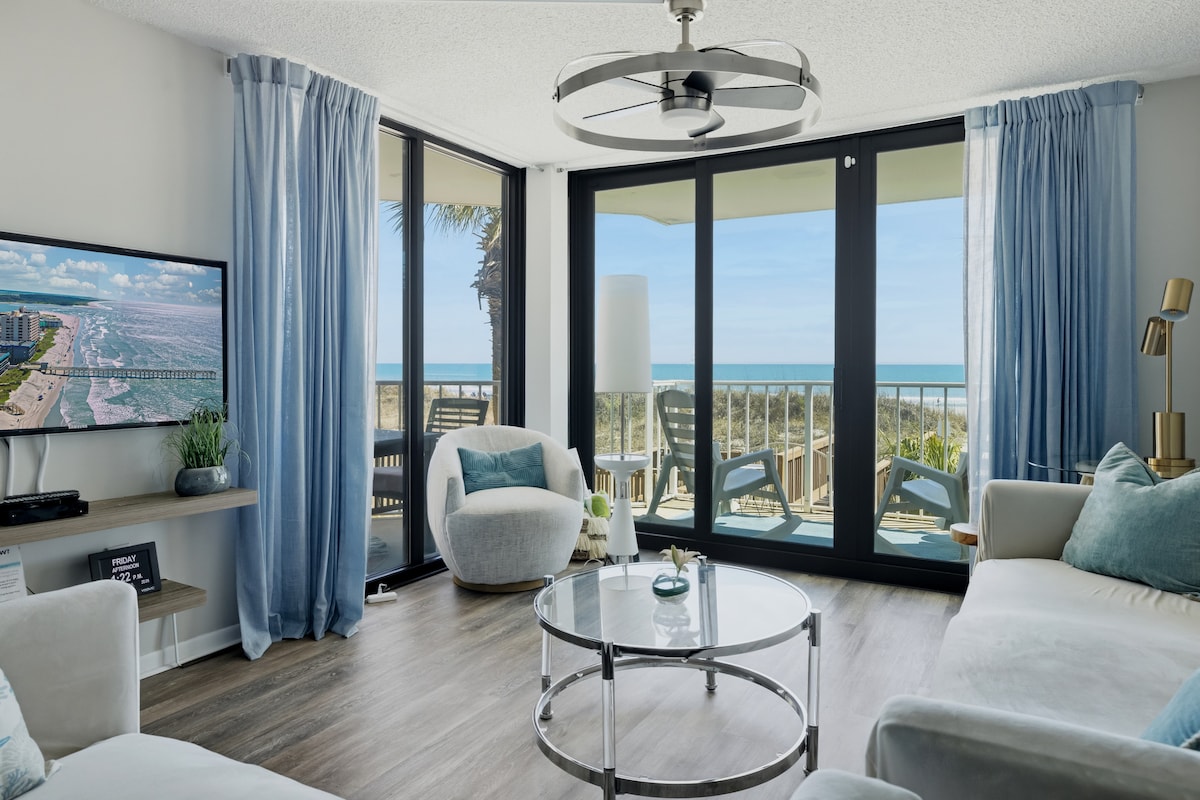 Évadez-vous à « Surf It Off », un superbe condo en bord de mer au 15e étage à North Myrtle Beach. Cette retraite en bord de mer offre une vue imprenable et directe sur l'Atlantique depuis un balcon privé. Parfait pour les familles, il peut accueillir confortablement jusqu'à six personnes. Profitez des commodités de l'hôtel comme les piscines, la rivière paresseuse et l'accès direct à la plage. Un logement lumineux et moderne avec un espace de travail dédié vous attend pour une escapade côtière parfaite.