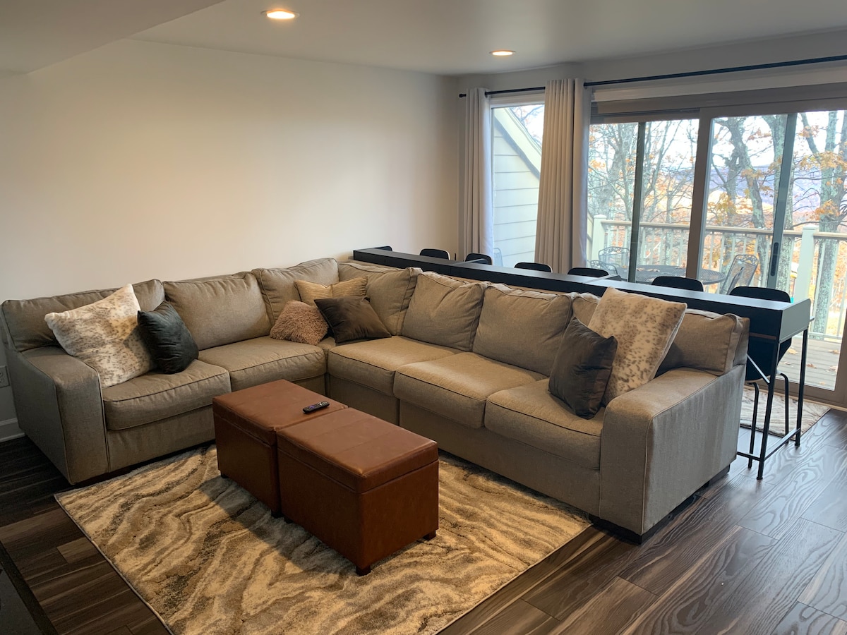 Ce logement paisible offre un séjour détente pour toute la famille. Cette escapade en montagne est un endroit absolument magnifique dans la station. C'est un condo accessible à skis. Votre famille adorera l'atmosphère chaleureuse du Moose Mountain Lodge. Vous êtes à quelques minutes de toutes les activités que Massanutten a à offrir. Du ski, golf 36 trous au parc aquatique et tout ce qui se trouve entre les deux. Les options alimentaires sont infinies ainsi qu'une cuisine approvisionnée pour vous. ANIMAUX ACCEPTÉS AVEC FRAIS POUR LES ANIMAUX.