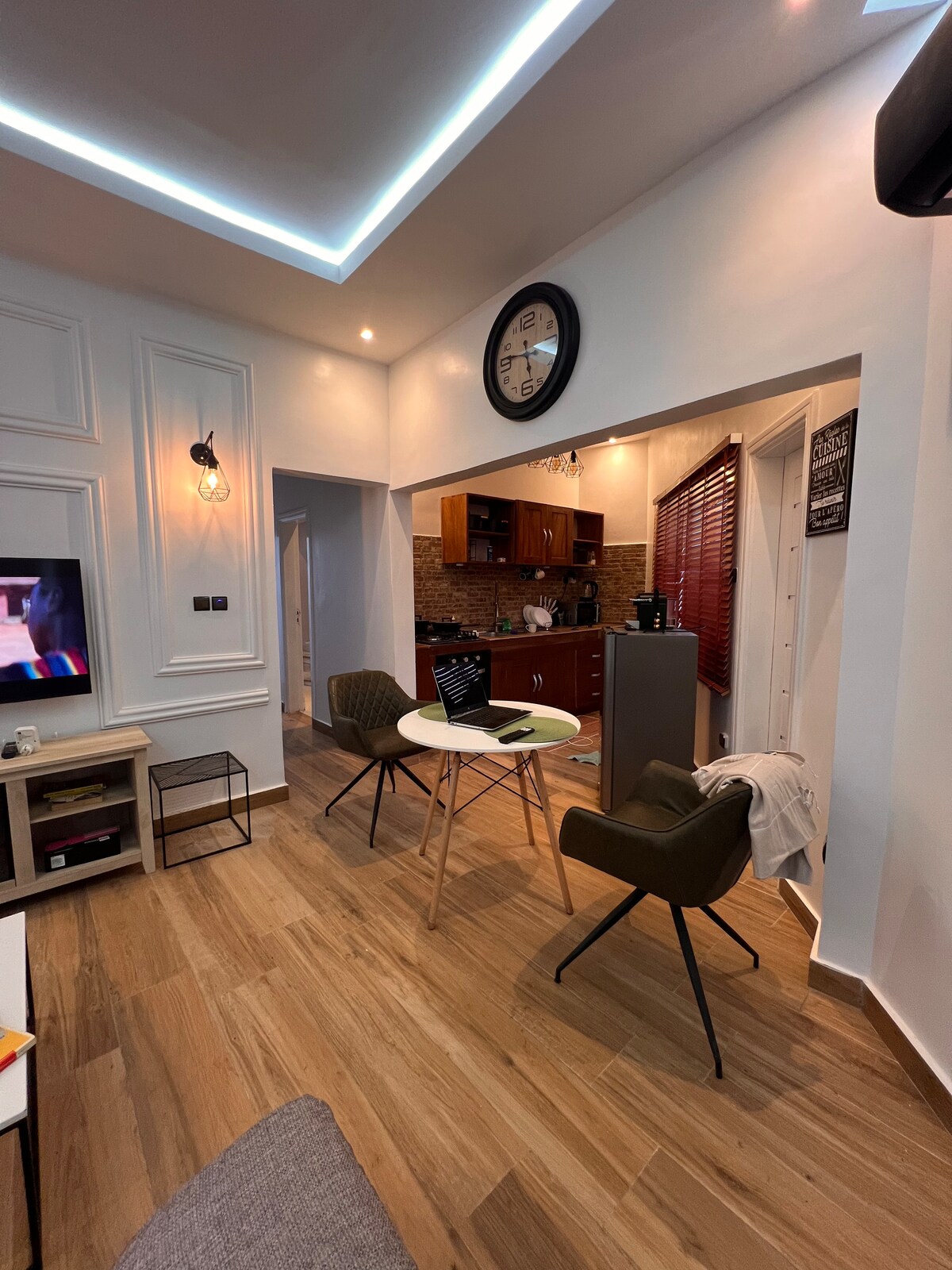 Oubliez vos soucis dans ce studio spacieux, élégant et fonctionnel , avec une grande terrasse qui donne une vue magnifique sur la ville. L’appart est entièrement climatisé, La cuisine dispose de tous les équipements modernes, Le salon est équipé de tv lcd et système hifi Samsung 2.1 pour agrémenter vos instants de détente. Pour les longs séjours , nos agents font le nettoyage général chaque 2 semaines à votre demande. * l’électricité et internet sont à la charge du client.