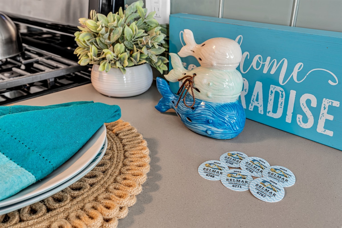 Bienvenue dans votre retraite de plage confortable. Située dans une rue calme à seulement 2 pâtés de maisons de Main Street, à 5 pâtés de maisons de la plage et à 5 pâtés de maisons de la gare, cette maison est à l'emplacement idéal pour des vacances en famille mémorables. Asseyez-vous sur le porche avant et dégustez votre café du matin. Barbecue en famille sur le patio arrière privé. Promenez-vous sur la magnifique Inlet Terrace de Belmar ou au Silver Lake. La maison peut facilement accueillir 10 personnes avec 4 chambres et 2 salles de bains. 4 vélos avec 4 pass de plage inclus dans votre location.