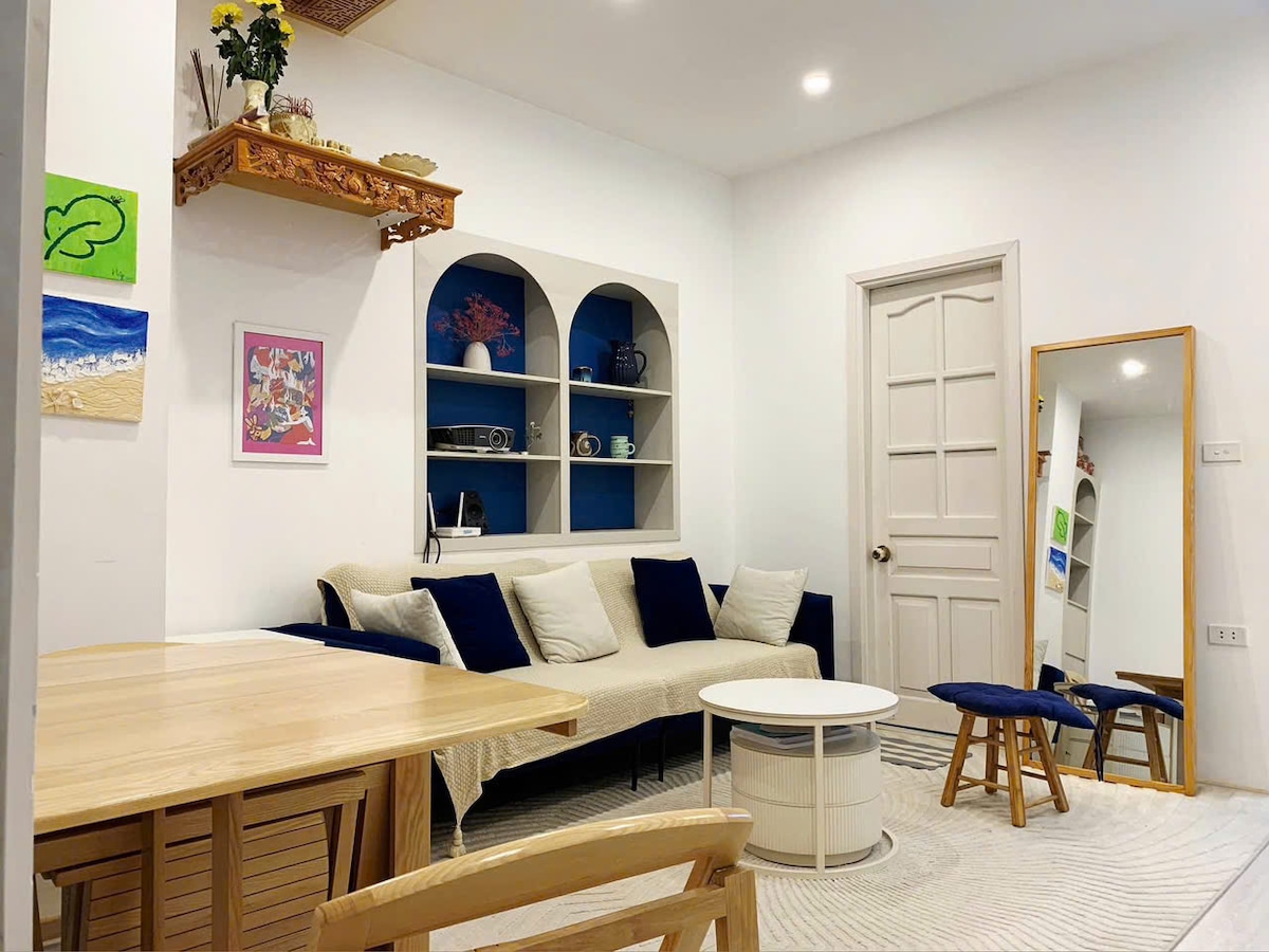 Le design de l'appartement est inspiré des techniques traditionnelles de teinture indigo des Hmongs des montagnes du nord du Vietnam. La décoration et les détails reflètent ce riche patrimoine culturel, créant ainsi une atmosphère sereine et unique - Nous offrons une carte SIM4G GRATUITE pour les réservations de 3 NUITS et plus chez nous; - L'EMPLACEMENT IDÉAL est plus qui vous convainquent d'aller de l'avant chez nous. - Porteur pour transporter vos bagages à votre arrivée. Nous sommes heureux de vous accueillir