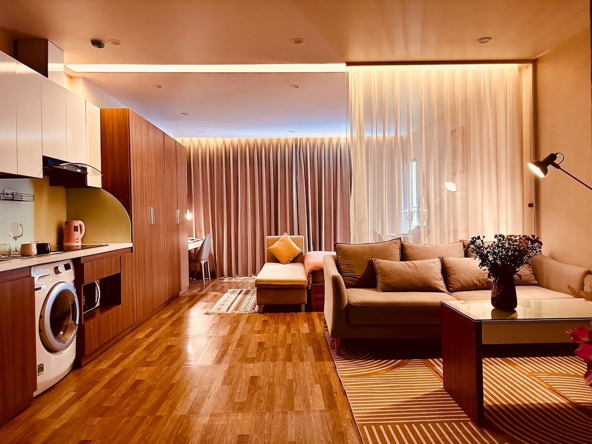 Résidence de tourisme combinée à un hôtel haut de gamme. 600 m à pied du lac ouest et à 15 minutes à pied du centre commercial Lotte, l'appartement est tout luxueusement conçu, entièrement équipé du lit confortable, de la cuisine, à la salle de bain moderne, pour vous apporter une expérience de séjour confortable et pratique comme à la maison. En particulier, l'hôtel dispose également d'une salle de sport pour vous aider à maintenir le régime d'entraînement quotidien, même lorsque vous voyagez pour affaires ou en vacances.