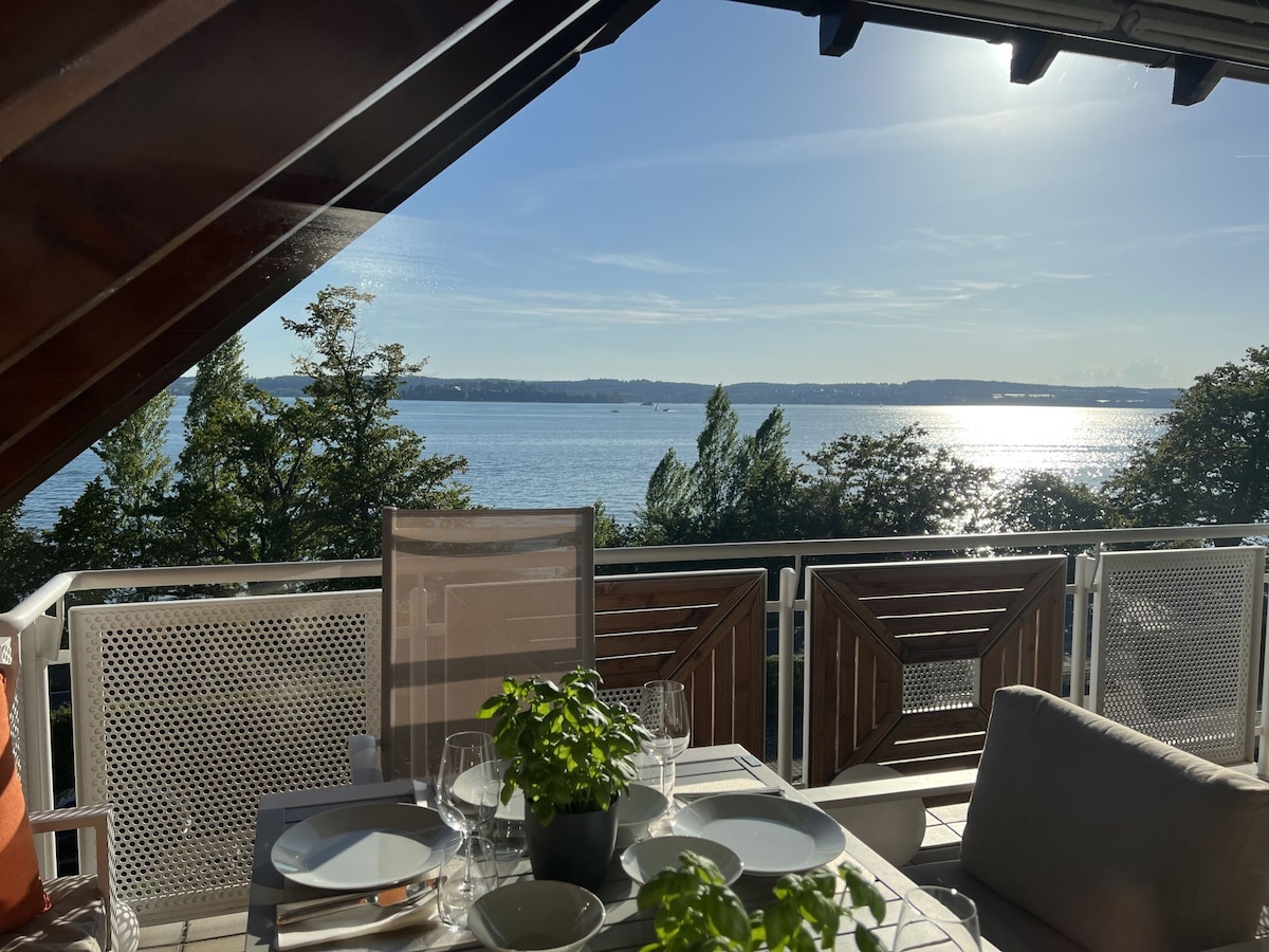Studio mansardé avec vue sur le lac à 180° et accès direct au lac