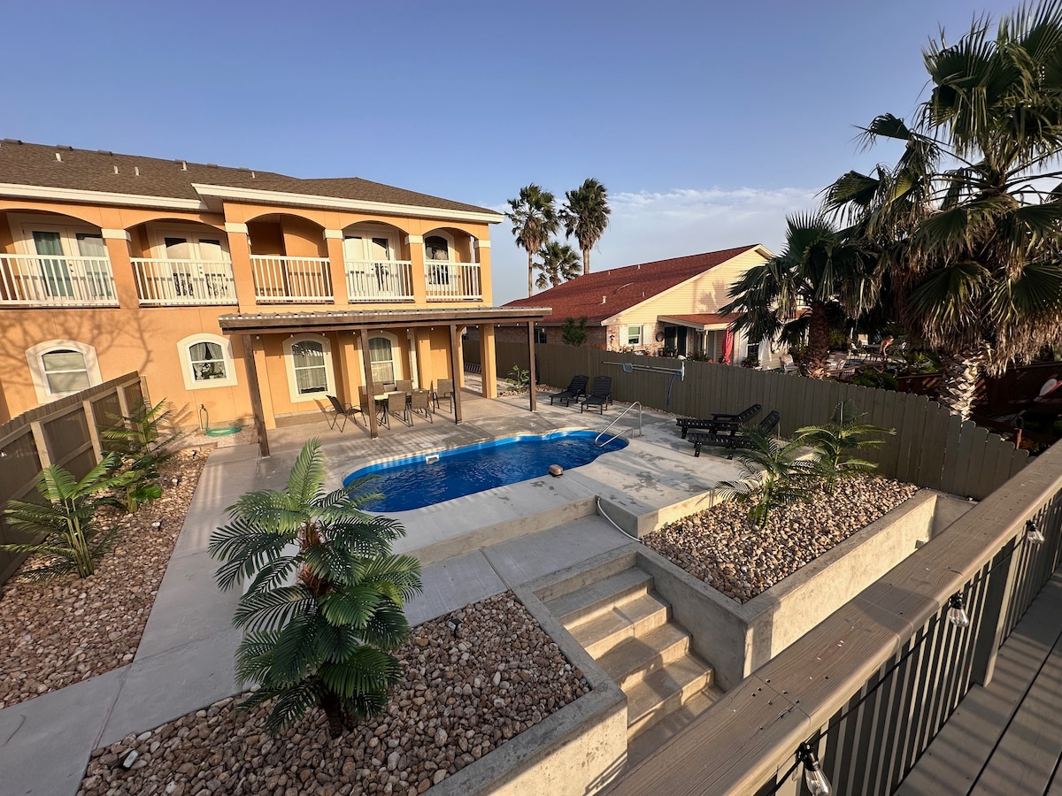 À 5 minutes en VOITURE de la plage de Whitecap! Maison de ville de style Key West avec 2 chambres et 2 salles de bain dans le complexe tranquille Marquesas. Profitez d'une cour clôturée privée, d'un barbecue extérieur et d'une piscine luxuriante à seulement une unité. Pas d'escaliers + 2 places de stationnement gratuites près de la porte. Téléviseurs Roku/DVD dans chaque chambre. À proximité de Mustang Island et de National Seashore. Idéal pour les familles, les couples ou les escapades à la plage. Demandez des options pour les grands groupes. Permis de location courte durée #125110
