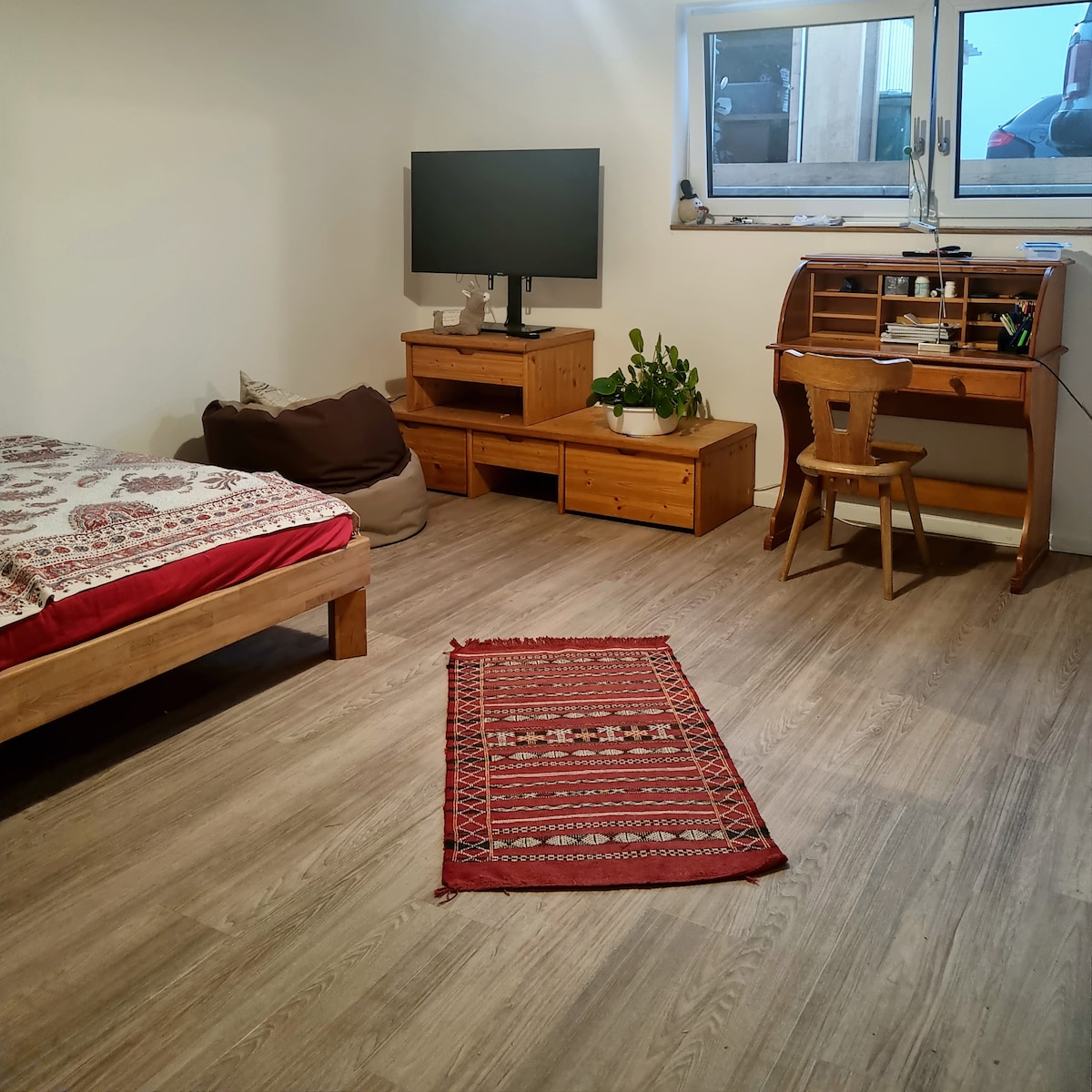 Élégant grand appartement 1 chambre entièrement équipé avec grande salle de bain, Smart TV avec Netflix, parking privé gratuit, bureau pour le bureau à domicile, lit double, canapé-lit, lit d'appoint. Cuisine entièrement équipée, dans un emplacement privilégié. Arrêt de bus, supermarchés, boulangerie, station-service sont à distance de marche. Autoroute A9 (5 min), Vieille ville (8 min), IN Village (8 min), Audi AG (8 min), Idéal pour jusqu'à 3 personnes. L'appartement est situé au sous-sol (SS).