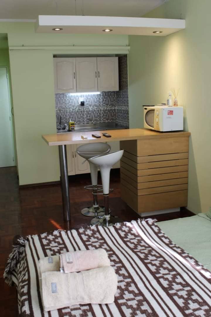 Appartement pour 2 personnes. À 3,2 km de la place Rivadavia, à 2 km de la gare routière et à 9,5 km de l'aéroport Comprend un petit-déjeuner de bienvenue gratuit L'appartement dispose d'un salon. Wifi, TV SMART Air conditionné froid/chaud dans la chambre et le chauffage. Une chambre avec deux lits simples ou un lit double (en option) La cuisine dispose d'un four, d'un micro-ondes, d'une bouilloire électrique, d'une poêle, d'un ensemble de couverts, de verres, de tasses, de révisions, etc. Linge de lit, serviette et drap de bain inclus