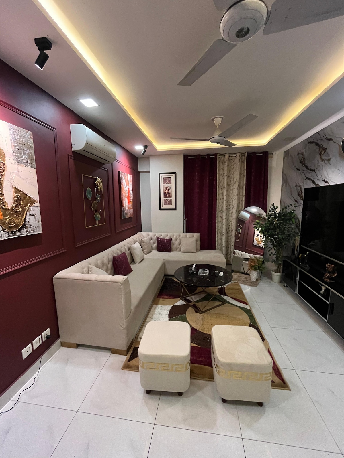 Appartement de luxe propre et confortable d'une chambre au 4e étage avec vue imprenable. Idéalement situé au cœur de Lahore, idéal pour les familles visitant Lahore. Ce prix comprend toutes les commodités telles que : piscine, salle de sport, cinéma, générateur/alimentation de secours 24h/24 et 7j/7, sécurité, ascenseurs et parking souterrain. - Internet haut débit et télévision LED Android intelligente de 32 pouces. - 1 lit king size. - Matelas supplémentaire pour les enfants. - Canapé en L pouvant accueillir jusqu'à 7 personnes. - Espace cuisine entièrement équipé. - Salle de bain propre et moderne.