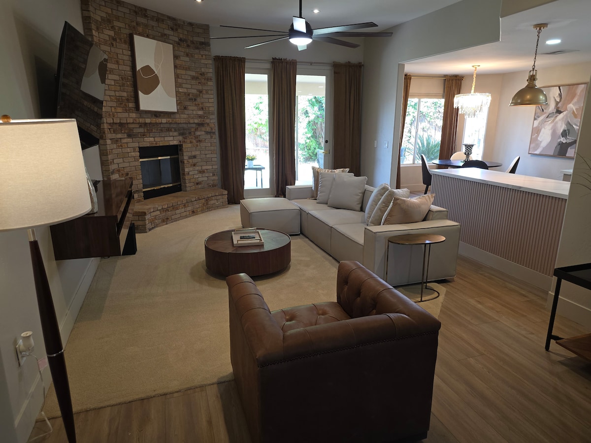 Profitez d'un séjour élégant dans cette maison de 2 chambres récemment rénovée et située au centre-ville de Bakersfield. Cette belle maison dispose d'une magnifique cuisine américaine entièrement équipée, d'appareils électroménagers en acier inoxydable dernier cri, d'une hotte aspirante, d'un grand évier de ferme et d'un mobilier moderne du milieu du siècle. La salle de bain est entièrement équipée pour vos besoins de soins personnels préférés, que ce soit pour vous prélasser dans la baignoire ou sous la douche à effet pluie. Que ce soit pour les affaires ou pour le plaisir, cet espace magnifique est fait pour vous !