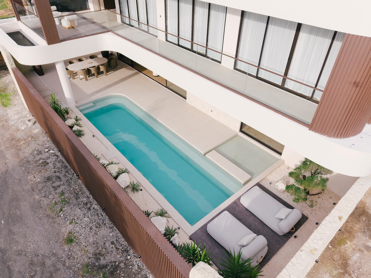Villa 1BR moderne toute neuve répartie sur 2 niveaux spacieux — entièrement privée et parfaite pour les couples ou les voyageurs en solo. À deux pas de Dreamland Beach ou d'El Kabron pour une ambiance inoubliable au coucher du soleil. Il y a beaucoup d'espace pour se détendre sur les chaises longues, profiter d'une nuit confortable avec de grandes télévisions ou cuisiner quelque chose de délicieux dans la cuisine entièrement équipée. Avec les plages de Bingin et d'Uluwatu à quelques minutes, c'est votre point de départ idéal pour les journées à la plage, les séances de surf et les soirées de rêve à flanc de falaise.