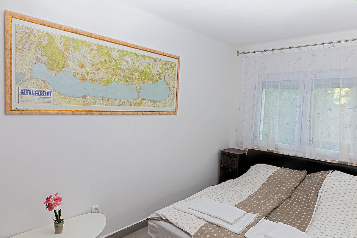 2 appartements à l'étage à louer près du centre de Balatonföldvár, dans une rue calme. À 5 minutes à pied des commerces, légumes, boulangerie, boucherie, terrain de football, tavernes. Ils peuvent être loués séparément ou ensemble. La cuisine, le salon et la chambre sont ouverts ensemble. Il dispose d'un balcon avec vue magnifique sur le lac et d'une salle de bains avec baignoire d'hydromassage. Le deuxième appartement est pour 3 personnes, plus un lit supplémentaire, avec 2 chambres, douche et balcon. Le prix comprend la taxe de séjour.