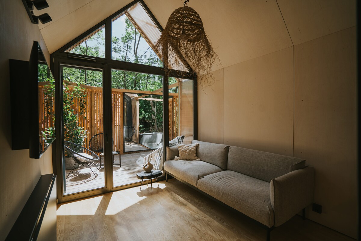 L'harmonie parfaite du développement durable, de l'intimité et du luxe vous attend dans le RENOUVEAU des cabanes haut de gamme de Slowood Cabins, en pleine forêt à Balatonszepezd. La cabane avec terrasse privée et jacuzzi suit la philosophie du « slow design », qui vous donne des solutions simples mais de qualité. Rechargez-vous et ralentissez, il s'agit de vous pour vous. Une plage de Balaton est à seulement 800 mètres du chalet.