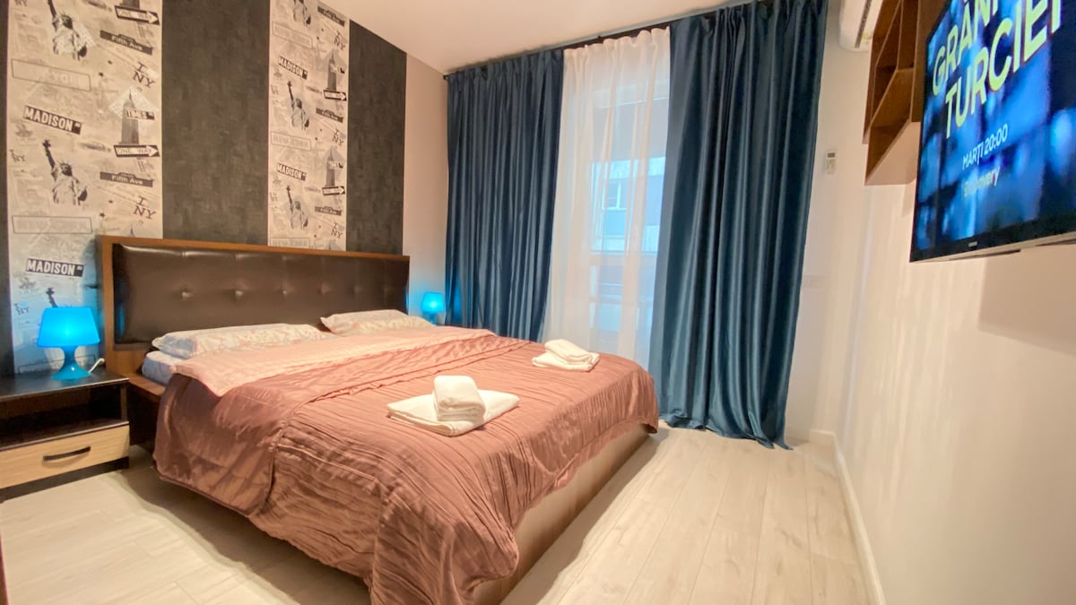 Ce logement unique a un style qui lui est propre. Il est conçu pour accueillir à la fois la praticité et l'esthétique, et pour vous offrir une expérience charmante et exquise. Il y a une salle de sport, une piscine et un sauna sur place, auxquels vous pouvez accéder en payant les frais requis, ainsi qu'un bistro (menu dans les photos). Tarif promotionnel les 2 premiers mois (piscine et saunas) : 1 à 3 heures : 100 RON - Adultes 80 RON - Enfants JOURNÉE COMPLÈTE : 150 RON - Adultes 120 RON - Enfants SALLE DE SPORT : Abonnement d'un mois : 300 RON Prix par jour : 50 RON