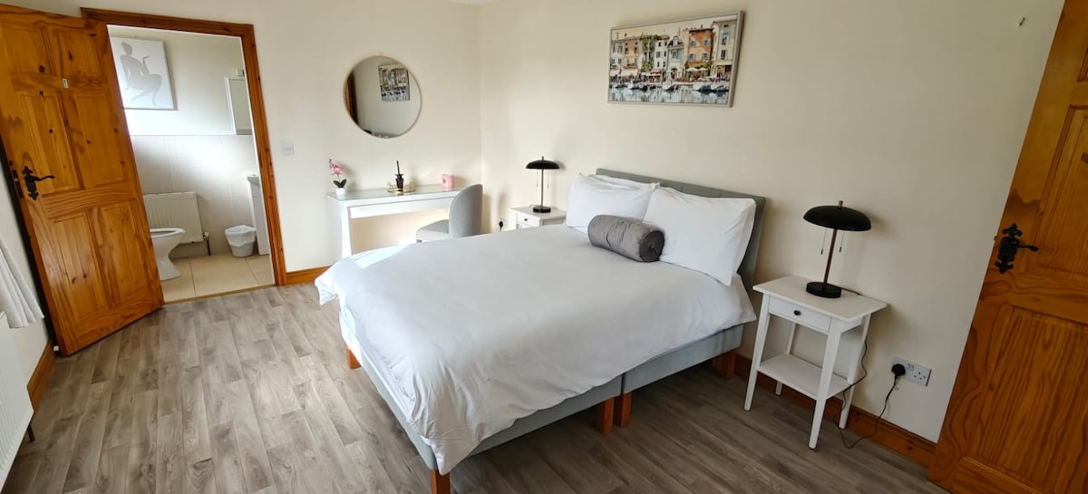 Notre chambre de jardin est une retraite paisible surplombant un magnifique jardin mature, l'escapade parfaite pour une courte pause relaxante. Élégamment conçu pour le confort, c'est l'endroit idéal pour se détendre et se ressourcer. Commencez votre journée avec un café sur la terrasse, détendez-vous sur le sofa et profitez du calme des environs au lever du soleil. 😃 La propriété est à seulement 3,5 km du centre-ville de Roscommon, ce qui vous permet d'être à proximité d'excellents restaurants, de sites locaux, de commodités et d'un large éventail d'activités de plein air.