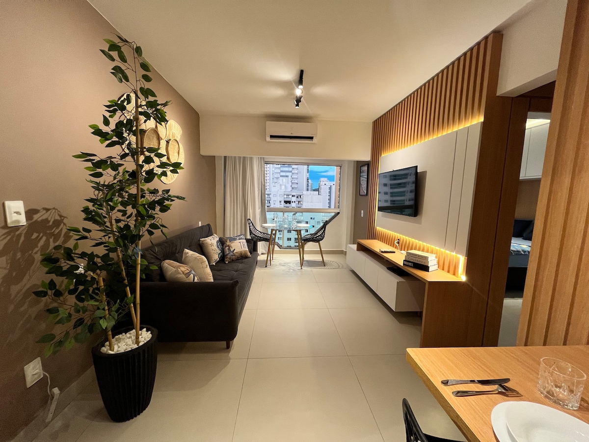 Amusez-vous avec toute la famille et les amis dans cet endroit plein de style. Appartement soigneusement conçu avec un projet architectural et luminotechnique pour votre meilleur confort et des journées incroyables. L'espace a été entièrement pensé et créé pour que vous ayez le confort et tous les éléments nécessaires pour un séjour parfait, que ce soit pour des vacances, du repos ou du travail, pour que vous vous sentiez chez vous. Situé à Barra Sul, l'un des quartiers les plus branchés et animés de la ville, également connu sous le nom de « Dubaï brésilien ». .