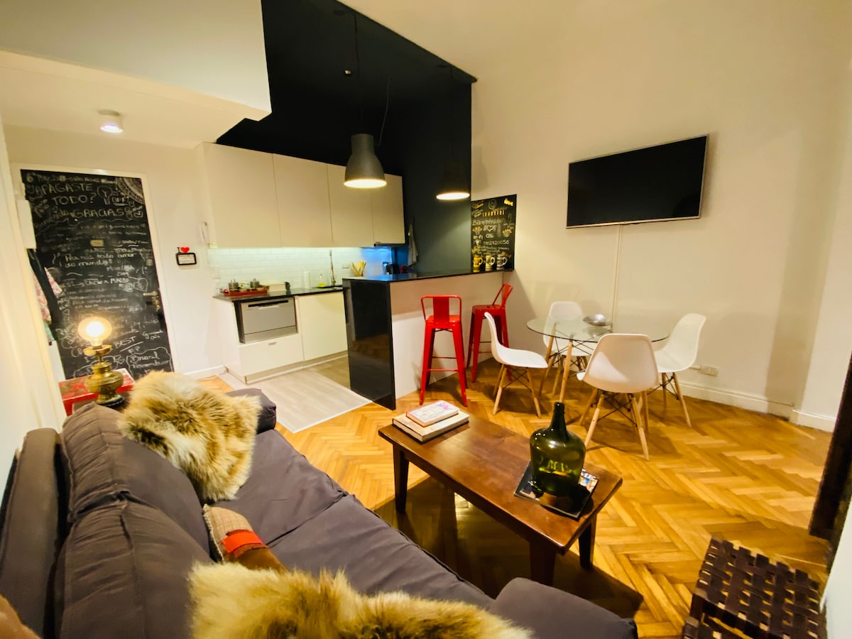 Bienvenue dans cet appartement cosy entièrement équipé pour un agréable séjour au cœur de Buenos Aires. Profitez d'une vue incroyable sur l'obélisque et l'avenue Corrientes depuis notre balcon. Situé en plein microcentre de Buenos Aires, à seulement 20 mètres du métro et du métrobus. À quelques minutes à pied des lieux emblématiques de la ville, tels que le théâtre Colón, le port de Madero et les galeries du Pacifique. Entièrement équipé : cuisine complète, eau chaude, wifi rapide et smart tv avec câble.