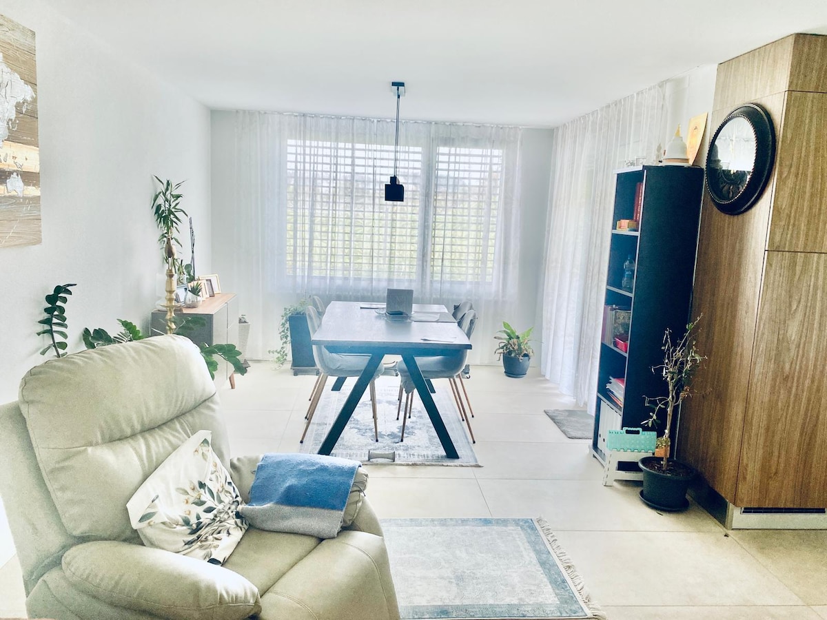 Studio an ruhiger Lage. Nähe Autobahn und 2 Buslinien. Eigene Küche, WC und Dusche. Mit grosszügige Terrasse. Neubau. Parkplatz steht zur Verfügung. Studio situé dans un endroit calme. Proche de l'autoroute et de 2 lignes de bus. Cuisine, wc et douche à disposition. Avec terrasse généreuse. Place de parking à disposition.