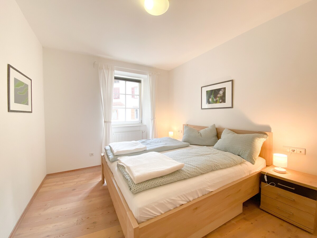 L'un de nos cinq appartements délicatement rénovés situé au deuxième étage d'une charmante ferme de caractère. C'est l'un des plus anciens bâtiments d'un charmant petit village du Valle d'Isarco, dans le nord de l'Italie. Nous nous trouvons en plein centre du Tyrol du Sud baigné de soleil, sur une colline à l'entrée des vallées de Gardena et Funes. Proche des montagnes des Dolomites mais non loin des villes populaires de Bolzano et Bressanone, c'est un point de départ idéal pour explorer la région.
