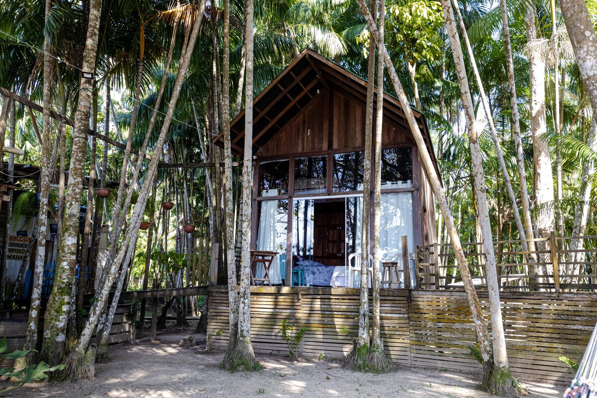 Profitez du confort exclusif de cette cabane sur l'île de Combu, entourée par la nature et surplombant la ligne d'horizon de Belém. Hébergement familial sécurisé avec un lit double et un matelas Emma, un canapé-lit, une salle de bain intérieure propre, une cuisine complète, un réfrigérateur et une climatisation puissante. Dans la rivière, Internet Wi-Fi et télévision intelligente avec un projecteur pour des moments de détente. Une retraite parfaite alliant confort et tranquillité au cœur de la nature amazonienne. Accès facile. VIVEZ CETTE EXPÉRIENCE!!!!