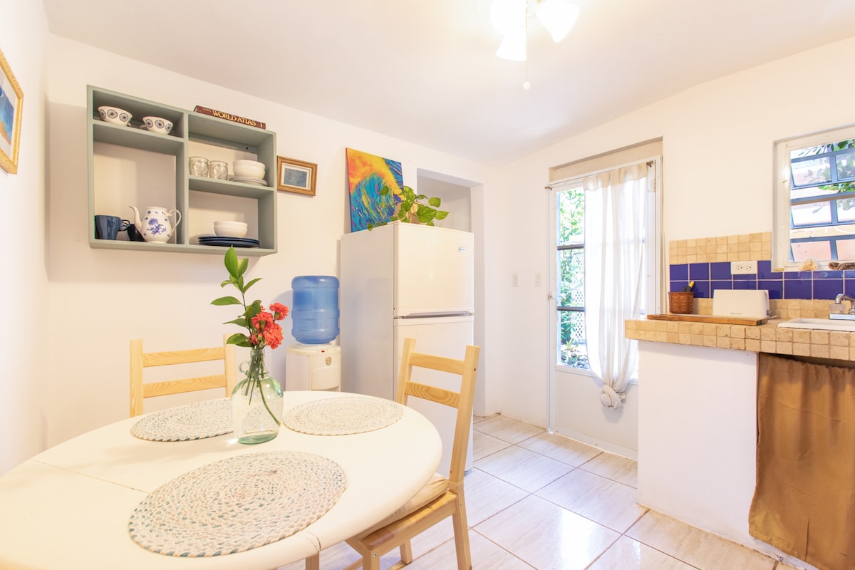 Ce studio côtier se trouve en face d'une plage de sable noir isolée avec des levers et couchers de soleil inoubliables. Profitez d'un lit king-size avec un matelas moelleux, de la climatisation et d'une cuisinette complète — tout ce dont vous avez besoin pour une escapade détendue à la plage. Situé sur la côte nord de Porto Rico dans un quartier sûr, vous serez à quelques minutes des restaurants locaux, de La Cueva del Indio, des sentiers de randonnée et des magasins Barceloneta Premium Outlets.