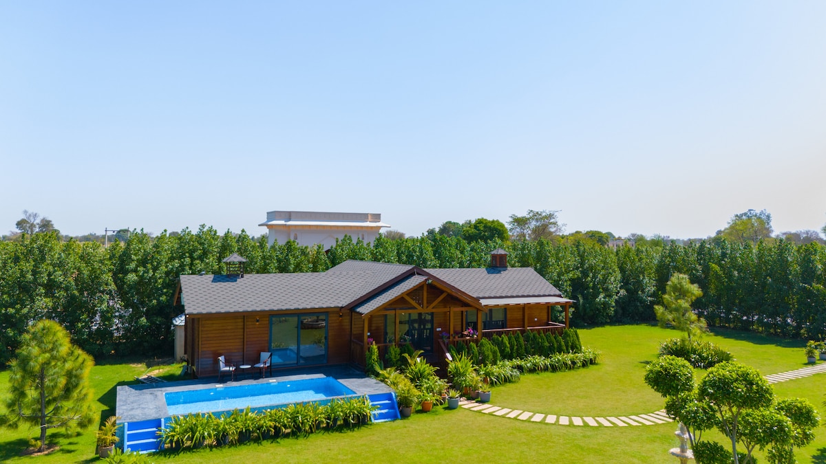 Chalet en bois 3BHK avec piscine et jardin - Petit déjeuner
