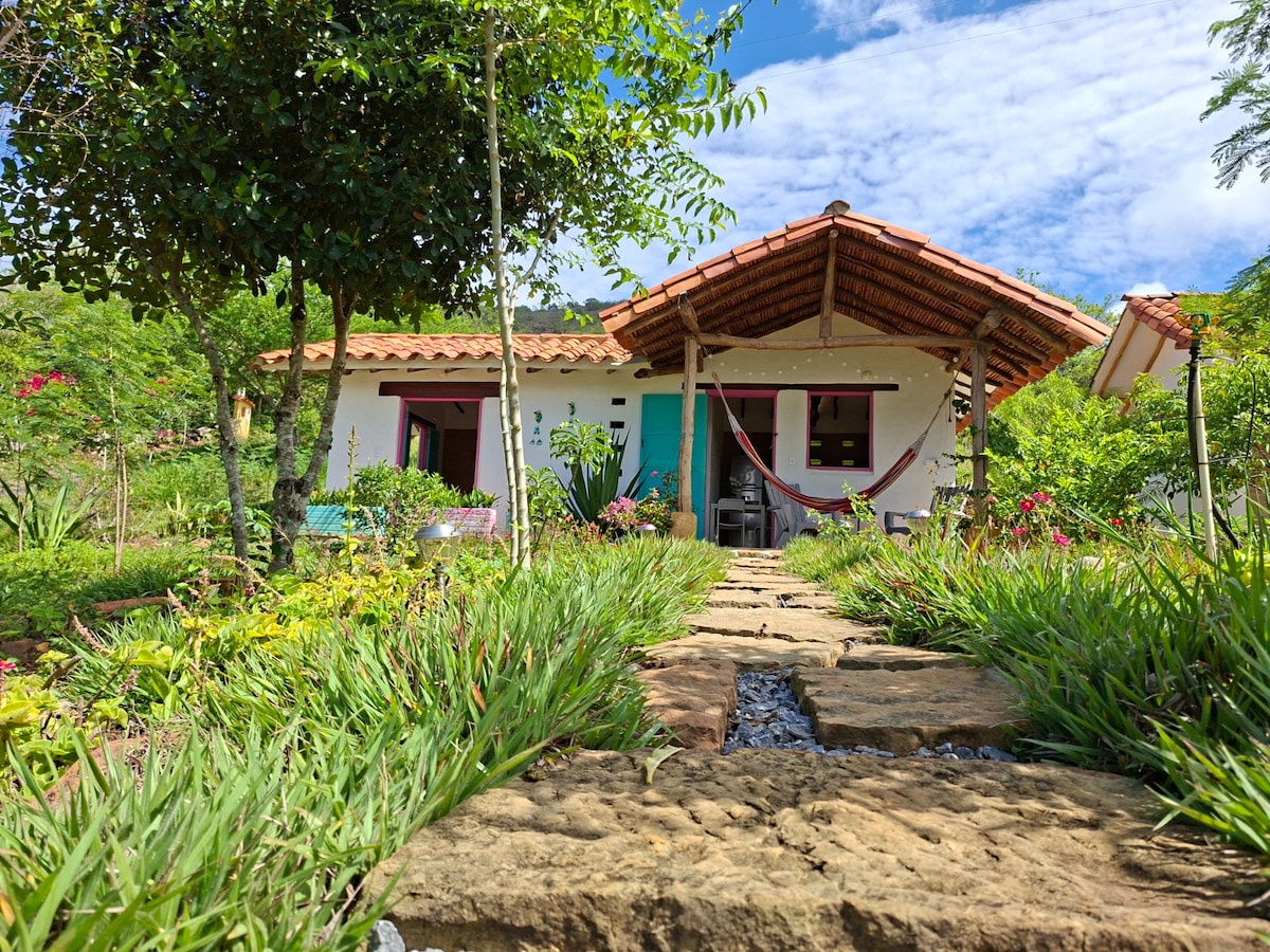 Votre chalet au paradis de Barichara. Un lieu paisible où vous vous réveillerez au chant des oiseaux. Profitez du calme de la campagne avec une connexion Internet stable et à haut débit (Starlink). Chambre avec lit double et espaces confortables, comprenant un bureau, une cuisine équipée et une douche avec eau chaude. Située dans un quartier sûr et agréable, à seulement 2 km du village. L'équilibre idéal pour les longs séjours : une nature vibrante, une communauté accueillante et tout le confort nécessaire pour vivre et créer en toute sérénité.