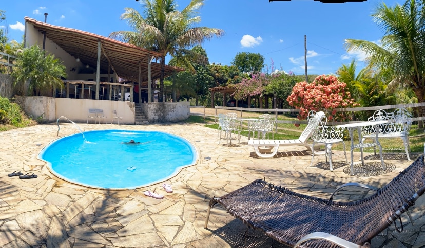 FERME PINGO DE OURO - Vargem Alegre - Barra do Piraí. Excellent endroit pour accueillir une famille ou un groupe. Local dispose de chambres à plusieurs lits, salles de bains, cuisine américaine, salon, buanderie, barbecue, piscine, douche, salle de bains pour femmes et hommes, table de ping-pong, lit élastique en option, hamacs, caméras de sécurité externes, parking intérieur pour jusqu'à 5 voitures, terrain de football à proximité et plusieurs magasins dans le quartier. Nous sommes à 12 minutes du parc Aldeia das Águas.