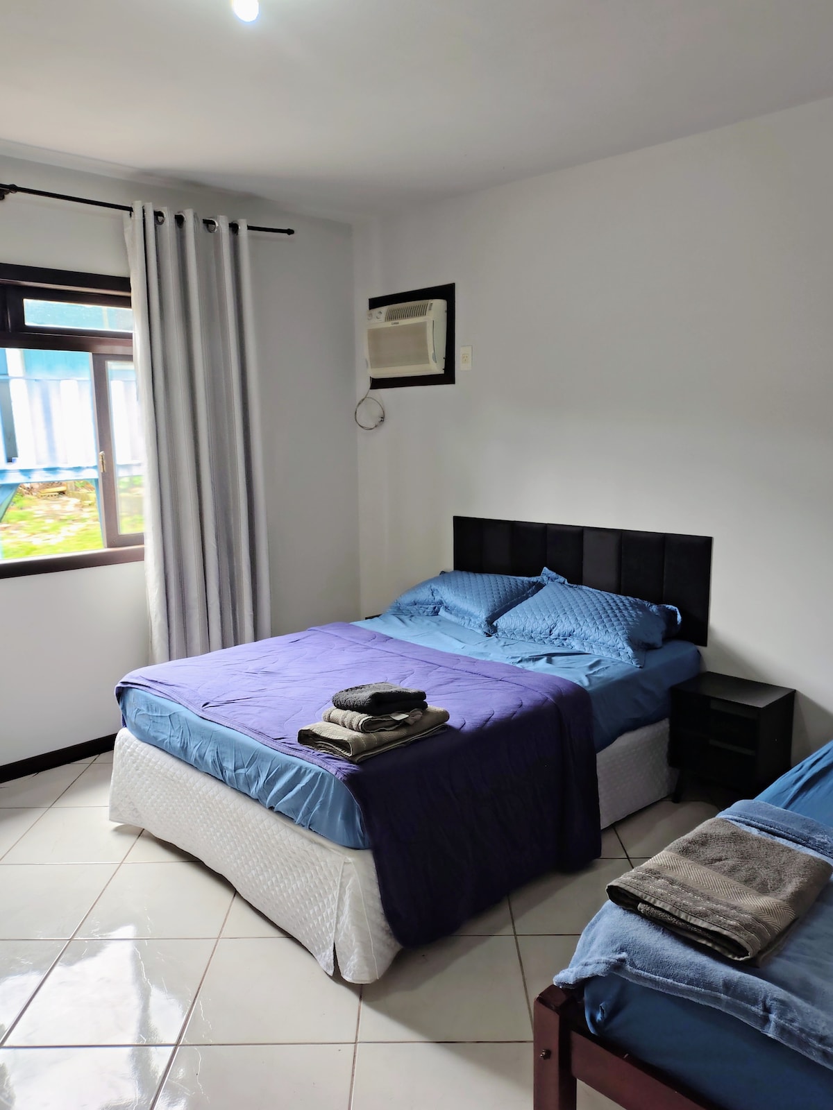 Appartement dans le Condomínio Home Club en bord de mer, avec piscines et plusieurs options de loisirs. Il est situé à 15 minutes en voiture du parc Beto Carrero. Vous aurez à votre disposition une suite avec climatisation et lit double, une chambre avec lit double et l'autre avec trois lits simples, toutes avec climatisation. La cuisine de l'appartement est bien équipée avec des appareils électroménagers et des ustensiles. Le balcon dispose d'un barbecue et d'une vue sur la mer Une place de parking et du linge de lit et de toilette sont inclus.