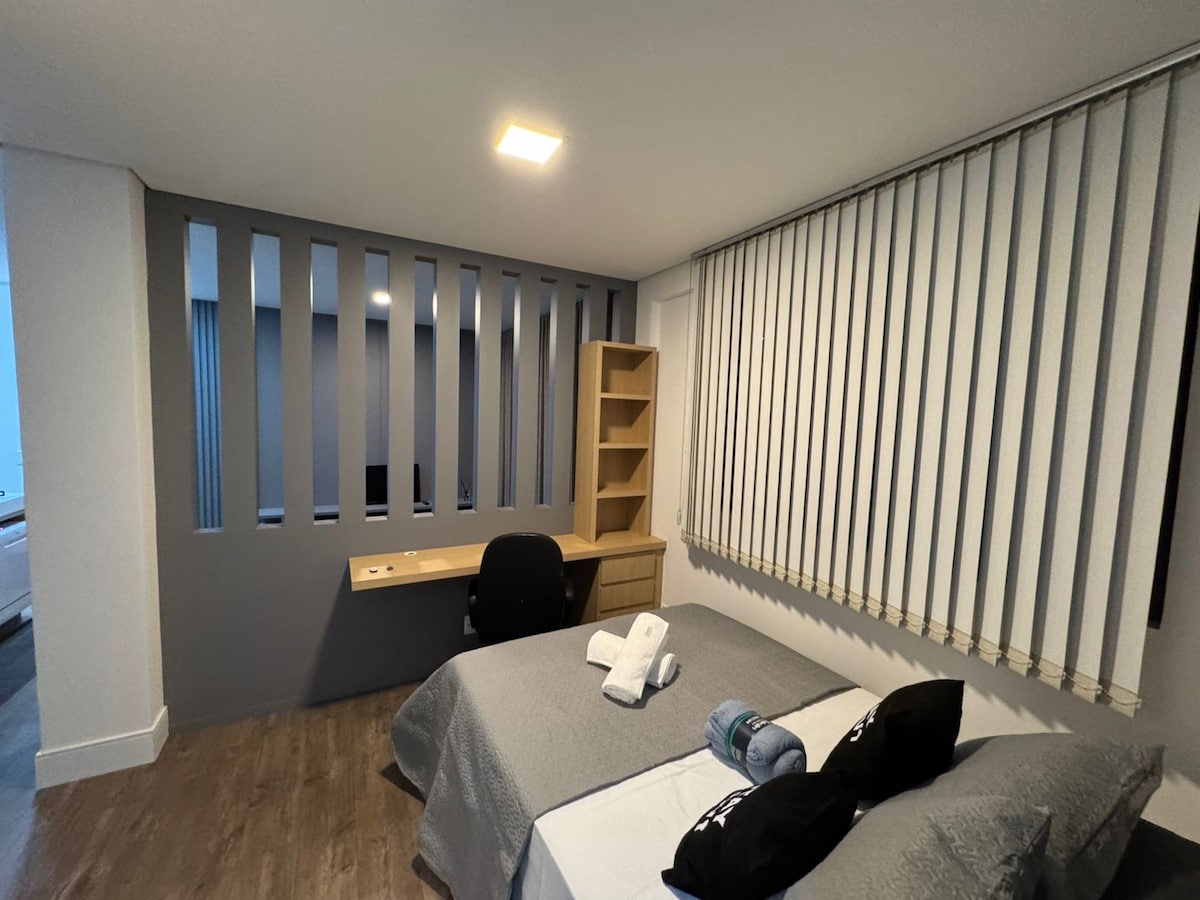 Appartement moderne, 32m2, situé au meilleur endroit de Sion. Cuisine pratique avec minibar, plaque de cuisson, TV (chaînes ouvertes/Netflix), climatisation, sèche-cheveux, bouilloire électrique et internet. Zone Sud, à côté de la Praça JK et de l'Avenida Bandeirantes, en face d'un supermarché. Rooftop de l'immeuble avec salle de sport, sauna, piscine, espace de vie et cuisine commune (eau, machine à glaçons). Nettoyage à la demande disponible. Immeuble sécurisé avec concierge 24h/24. *Pas de garage inclus.