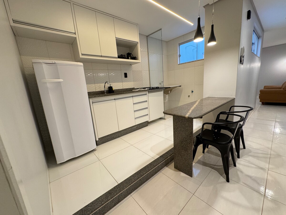 Studio neuf et confortable à Barreiras/BA, dans le quartier de Renato Gonçalves. Avec cuisine complète, climatisation, wifi, télévision, laveuse et sécheuse, et salle de bain privée. Bâtiment avec piscine, coin repas extérieur et centre de remise en forme. À 13 km de l'aéroport, à 3 km du centre historique et à proximité de Rio de Ondas. Parfait pour se reposer ou travailler. Confort et hospitalité vous attendent! 🌟