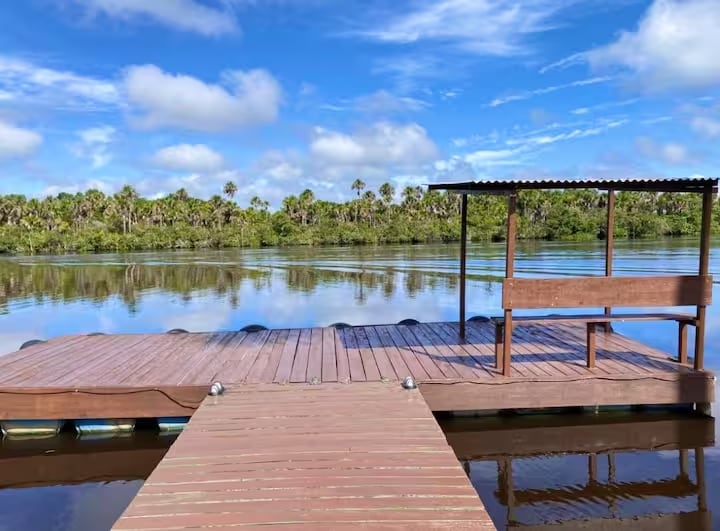 Vivez une expérience unique au cœur de la nature exubérante de Lençóis Maranhenses. Notre chalet allie confort, intimité et intégration avec la nature, idéal pour ceux qui recherchent la tranquillité sans renoncer aux commodités. Hébergements parfaits pour les couples, les familles ou les petits groupes. Chalet en copropriété écologique avec jetée dans la rivière, piscine, marina et kiosque. Accordez-vous un séjour en pleine nature, profitez du bord de la rivière et des promenades en bateau. On a quatre lits. Vous trouverez plus d'informations.