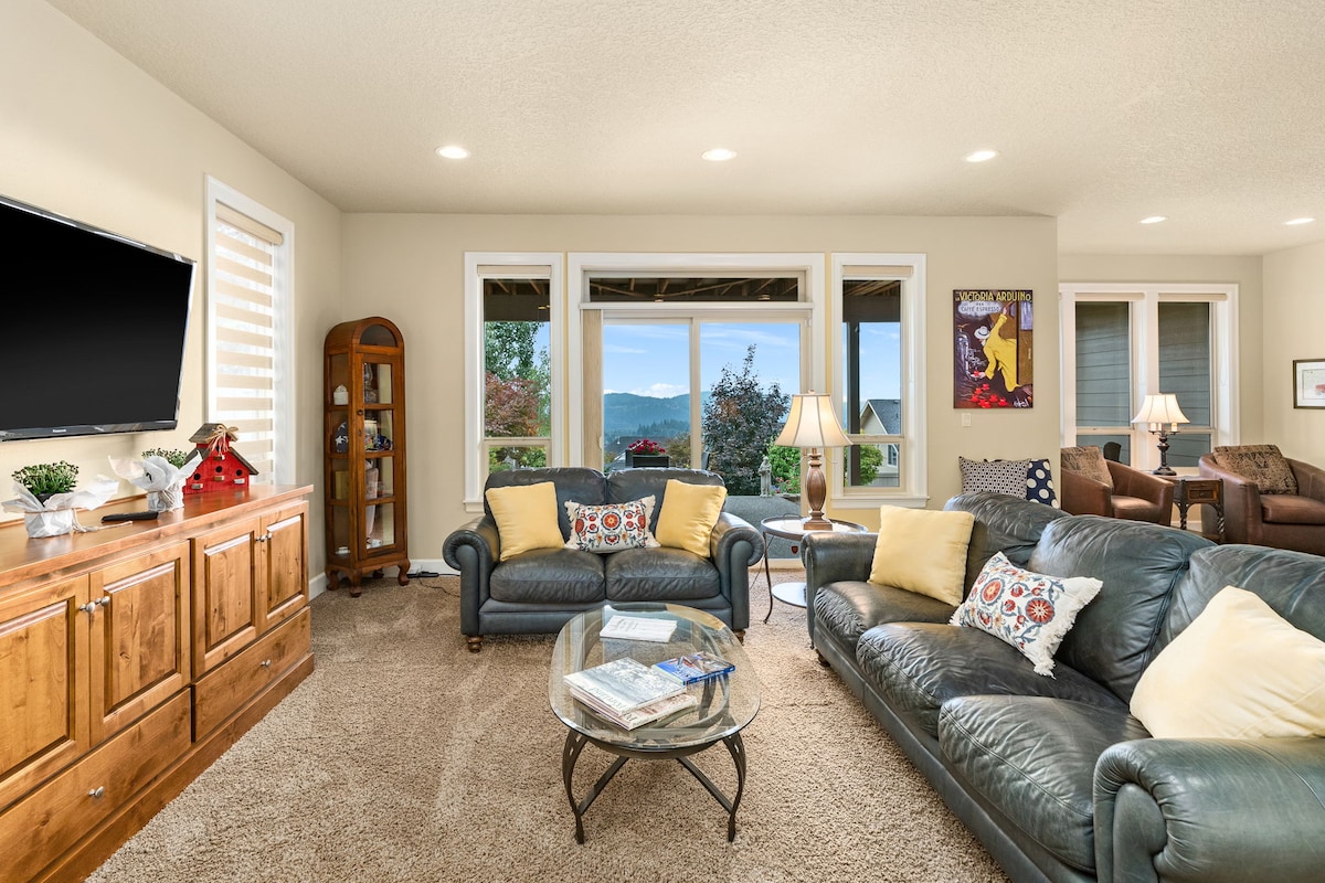 Bienvenue dans notre maison de campagne à un mile de la rivière Clackamas, avec vue panoramique sur le mont Hood depuis la terrasse et le jacuzzi. Le tarif annoncé est pour une chambre privée et un lit King Size avec sa propre entrée au niveau inférieur de notre maison de deux étages. Vous entrez le long d'un chemin de jardin sur une terrasse privée. À 14 minutes de l'I-205, à un mile des restaurants, à 30 minutes de l'aéroport (PDX).