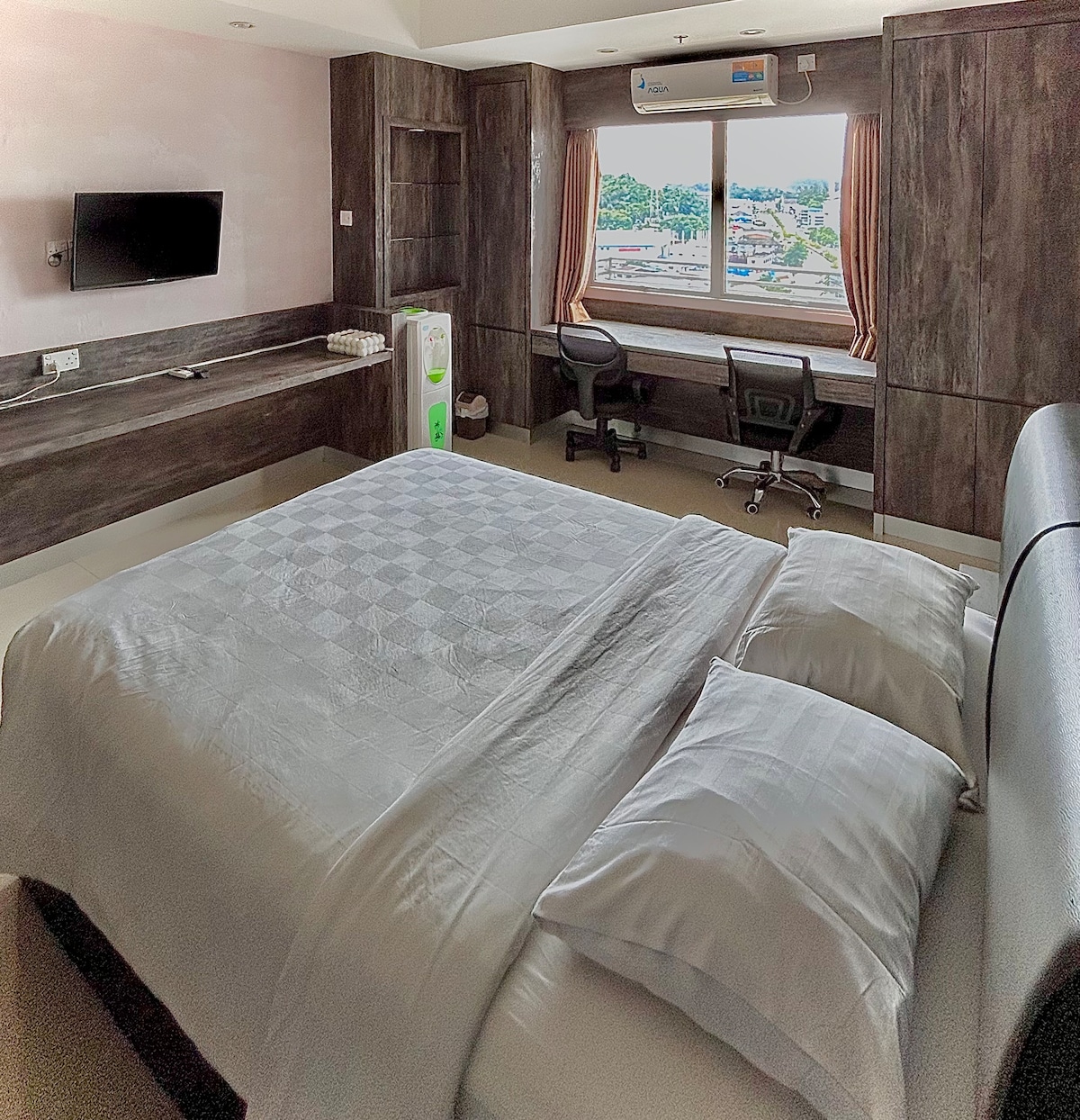 Cet appartement de luxe est situé à côté du centre commercial Harbour Bay, du terminal de ferry et de l'hôtel Marriott. À 2 minutes à pied de la promenade qui offre des restaurants fantastiques, des boîtes de nuit et de la musique live et des sports. L'appartement est nouvellement meublé avec un lit King Size, un canapé-lit, la climatisation, une connexion Wi-Fi, deux grandes téléviseurs intelligents, Netflix, un balcon avec vue, une kitchenette, un réfrigérateur, un four à micro-ondes, une grande douche, une armoire double, des rideaux occultants, une table et des chaises. La résidence dispose également d'une grande piscine fantastique et d'une salle de sport !