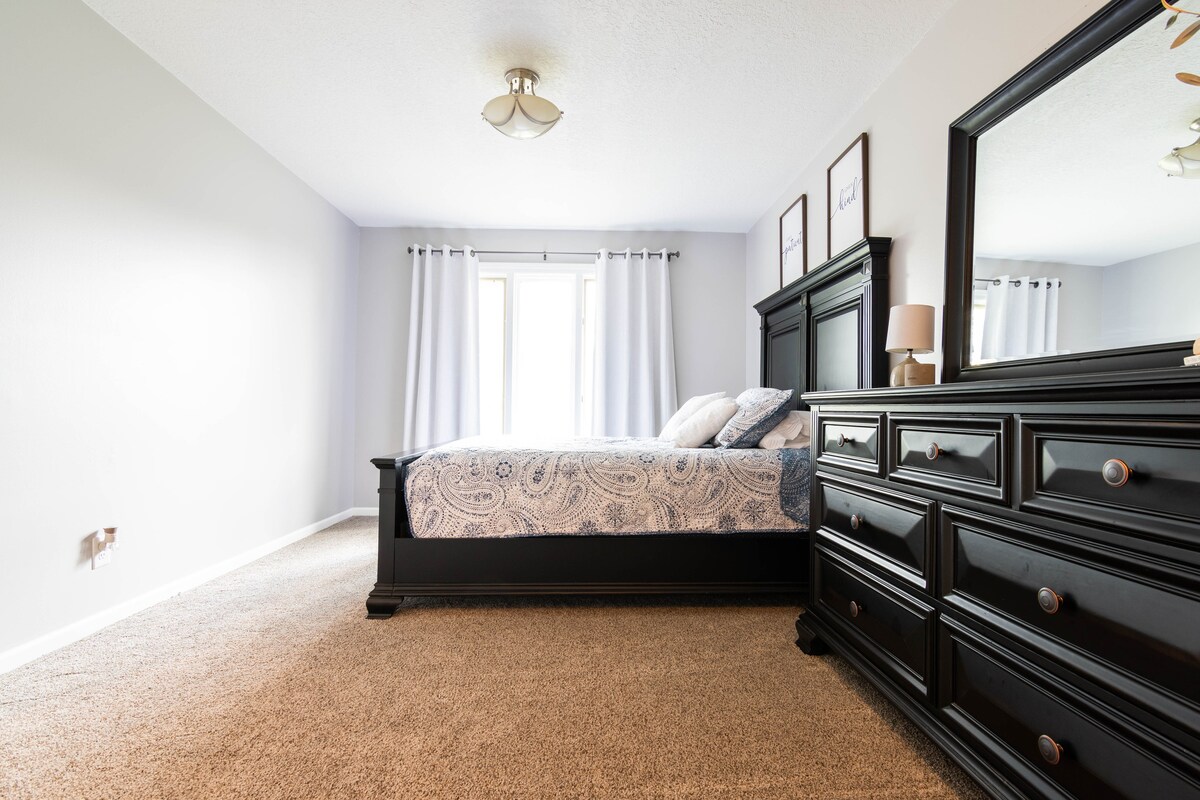 À 1 min de l'hôpital Mercy. Profitez d'un logement élégant et central. La cuisine est entièrement équipée. Chacune des 3 chambres est équipée d'un lit queen size, d'une télévision connectée, de rideaux occultants, d'oreillers supplémentaires et de couvertures supplémentaires. Le séjour dispose d'un canapé, d'une télévision de 70 pouces, d'un bar à musique avec un tourne-disque et des disques de style années 50. Plus un bar à café avec plusieurs options différentes. Le jardin est entièrement clôturé. Si vous êtes un travailleur itinérant, envoyez-moi un message pour une meilleure offre à long terme.