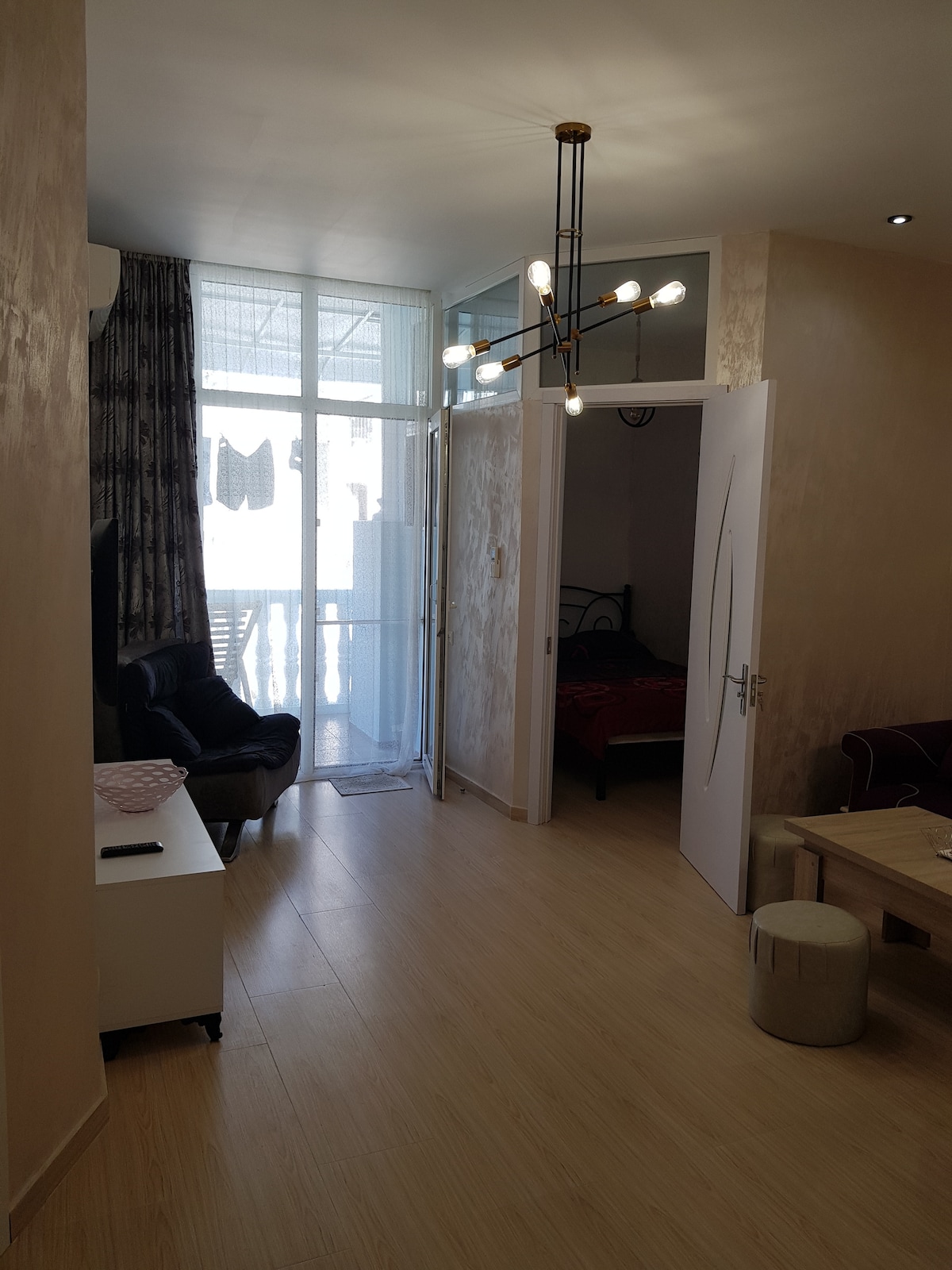 l'appartement est neuf, de type studio. tout y est neuf. il y a tout pour cuisiner et manger. C'est près de la mer et du boulevard. La vue est incroyable jour et nuit. près de l'appartement est tout ce dont le tourisme a besoin. parc, mer, boulevard, parc aquatique, grande épicerie et arrêts de bus.