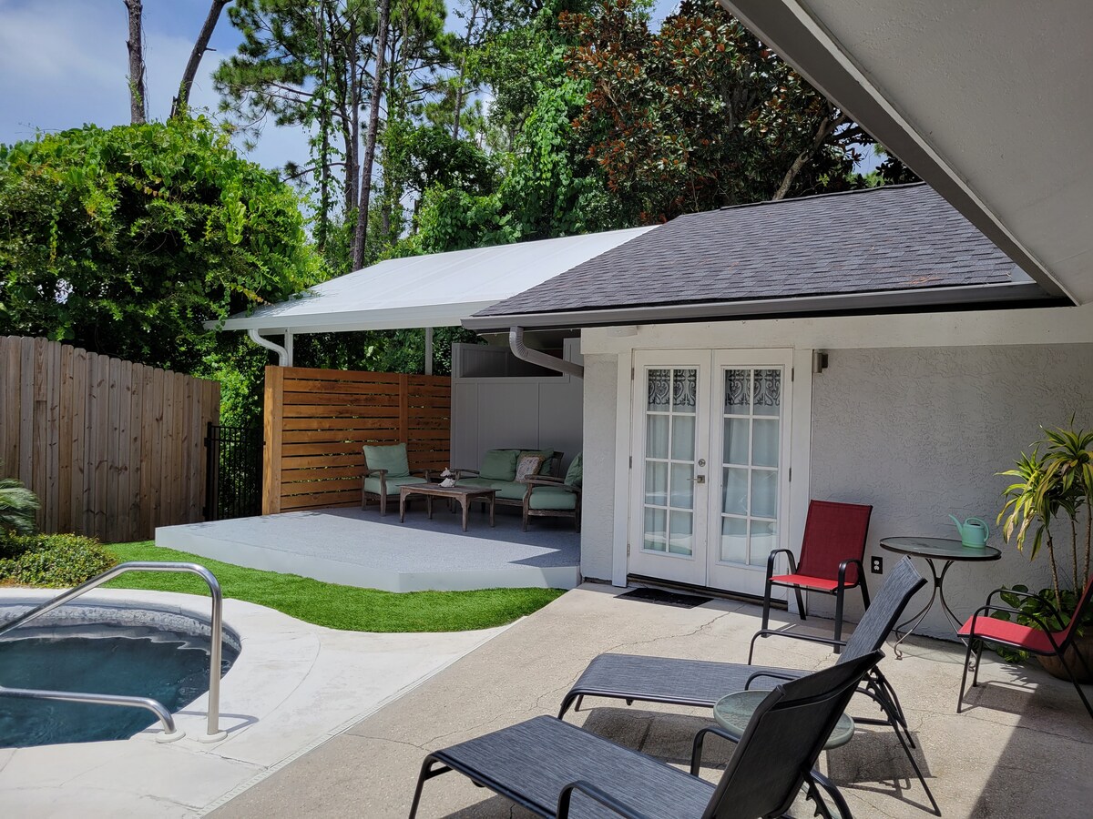 Bienvenue à Fan Palm Panama City Beach. Nous sommes situés à l'extrémité est, à proximité de Thomas Drive et de l'autoroute 98. Notre maison dispose d'une piscine creusée privée avec un aménagement paysager luxuriant et plusieurs espaces extérieurs pour profiter de votre café du matin, vous détendre avec un bon livre ou jouer à des jeux de jardin avec les enfants ou les animaux de compagnie. À l'intérieur, nos voyageurs trouveront de nombreuses améliorations avec une cuisine entièrement équipée ouverte sur la salle à manger, le salon et la piscine. Nous accueillons les familles et acceptons les animaux de compagnie.
