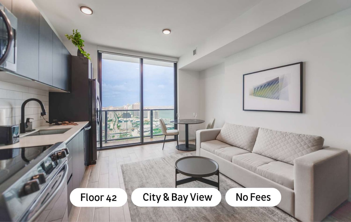Réveillez-vous au-dessus de la ville avec une vue imprenable sur la baie et la ligne d'horizon du 37e étage. Du lever du soleil sur la baie de Biscayne aux nuits scintillantes, ce studio confortable est votre escapade parfaite à Miami. Sortez pour profiter du meilleur de Brickell : bars sur les toits, restaurants, boutiques et promenade au bord de la baie, tous à distance de marche. Stationnement gratuit (rare à Brickell) et accès facile au métro à seulement deux pâtés de maisons. Détendez-vous et sentez-vous comme chez vous dans votre retraite privée dans le ciel.