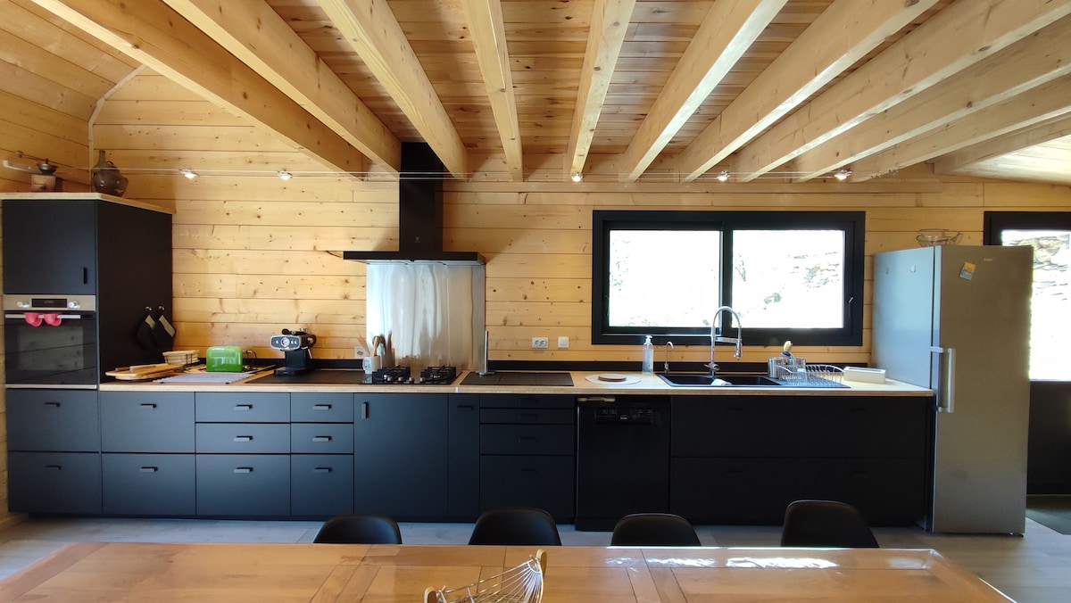 Chalet cosy pour 8 pers avec piscine, terrain de pétanque, terrasse et vue panoramique sur les montagnes. Idéal pour familles ou amis en recherche d'escapades, de nature et de calme 🌲🏔️ Bienvenue dans notre chalet, l'alliance parfaite entre le charme authentique du bois et le design contemporain. Idéalement situé pour vous offrir à la fois le calme des montagnes et l'accès rapide aux trésors des Pyrénées.