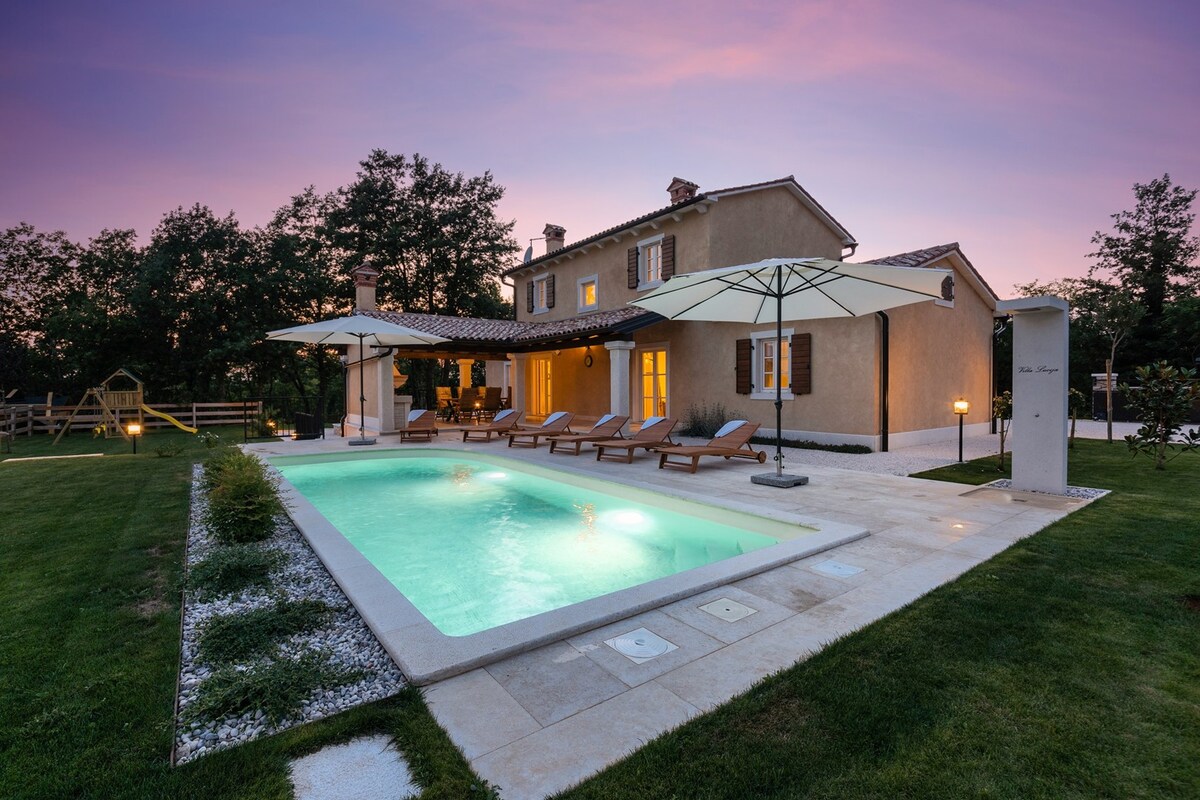 Villa Lunetta is a modern retreat in the heart of Istria, blending contemporary design with authentic charm. Surrounded by peaceful nature, it offers 230 m² of comfort with a spacious living area and gallery bedroom. Guests enjoy a private infinity heated pool, garden, and children’s playground, all exclusively theirs. Perfect for families or friends, it is a place where slow living, privacy, and relaxation come naturally, making every stay truly unforgettable.