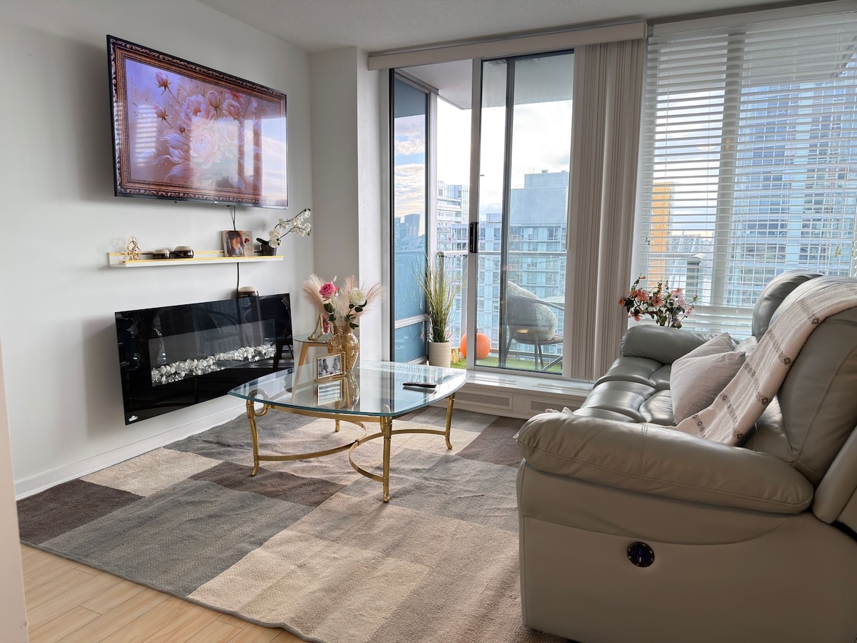 Découvrez le luxe du centre-ville à son meilleur ! Cette suite d'angle souhaitable dispose de baies vitrées, inondant l'espace de lumière naturelle et offrant une vue imprenable sur la ville. Profitez du confort d'un lit queen size, d'un canapé-lit et de la climatisation centrale. Profitez des équipements de l'immeuble : salle sociale, terrasse extérieure avec barbecue, salle de théâtre, bibliothèque, centre de remise en forme et sauna. Avec des boutiques, des restaurants et des transports en commun à quelques pas, c'est le point de départ idéal pour votre escapade en ville !